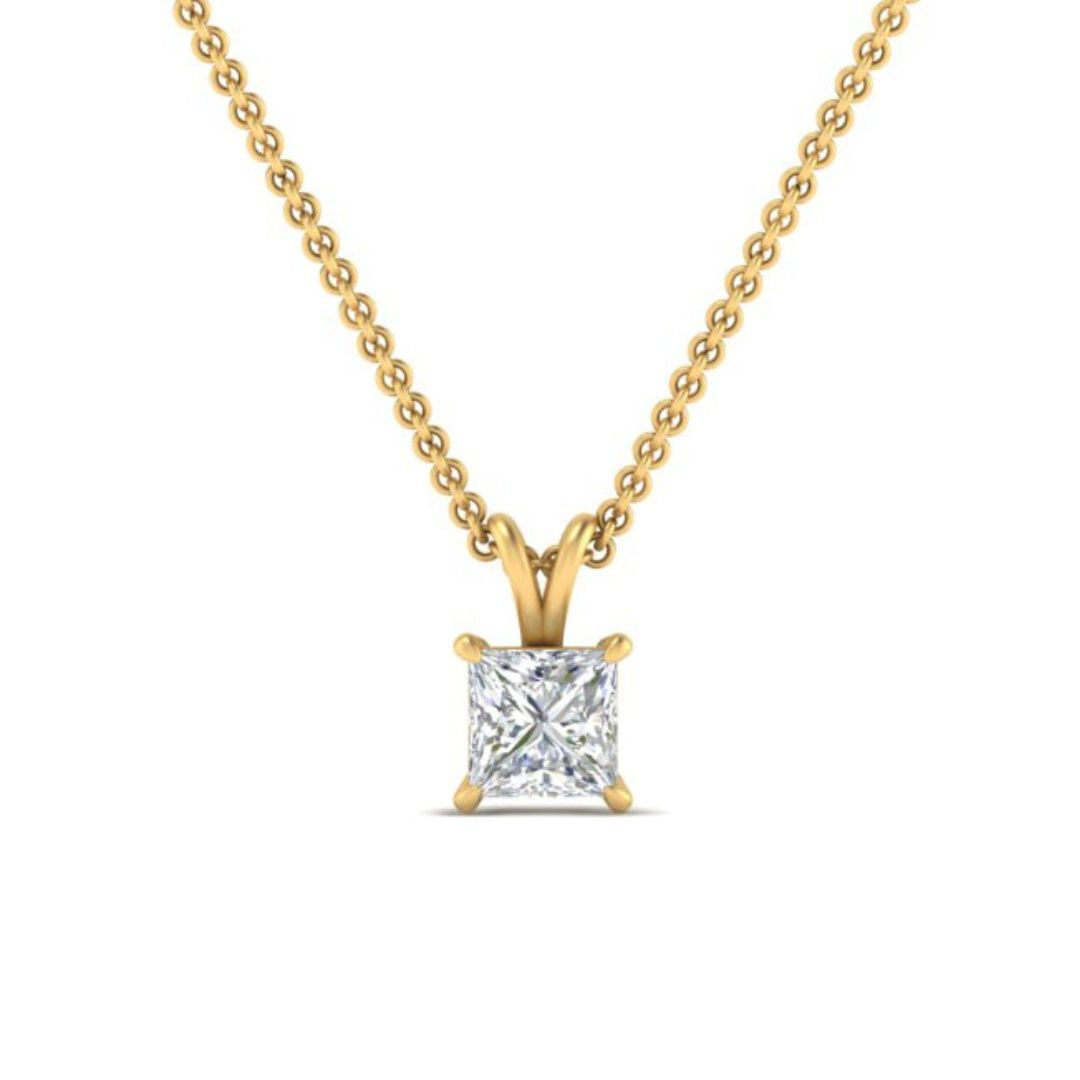 0.33Ct Princess Solitaire Lab Grown Diamond Pendant in Yellow Gold