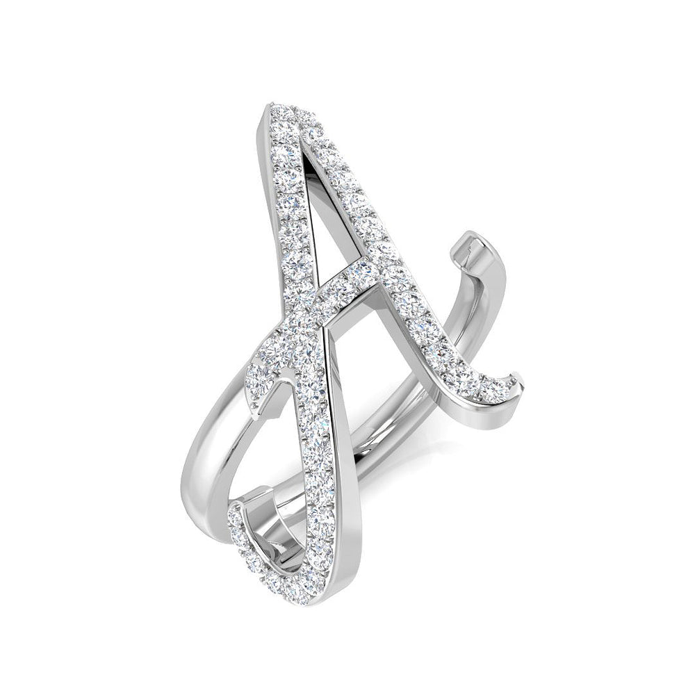 Make it personal with our Letter A Initial Ring, crafted in a flowing script design and encrusted with 0.45 carat of round brilliant diamonds in a micro pavé setting. This elegant piece combines timeless sparkle with sentimental charm — perfect as a gift or a statement of your own identity.