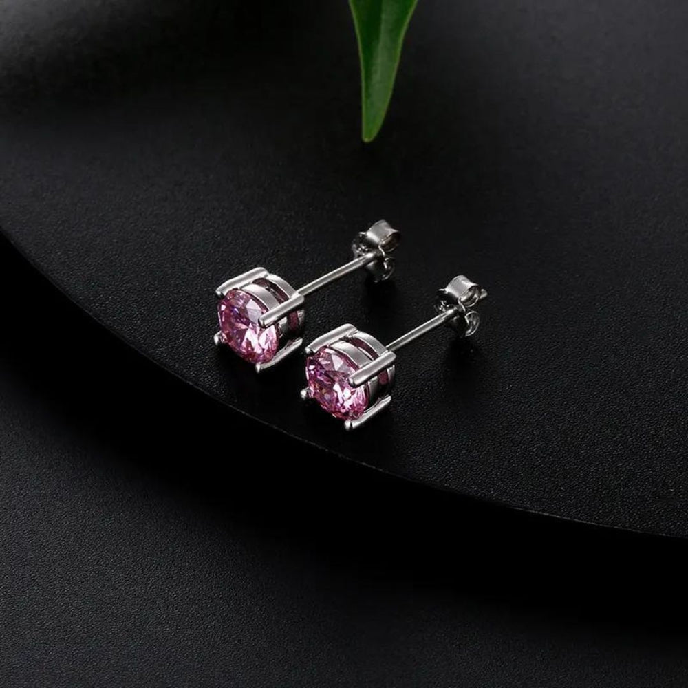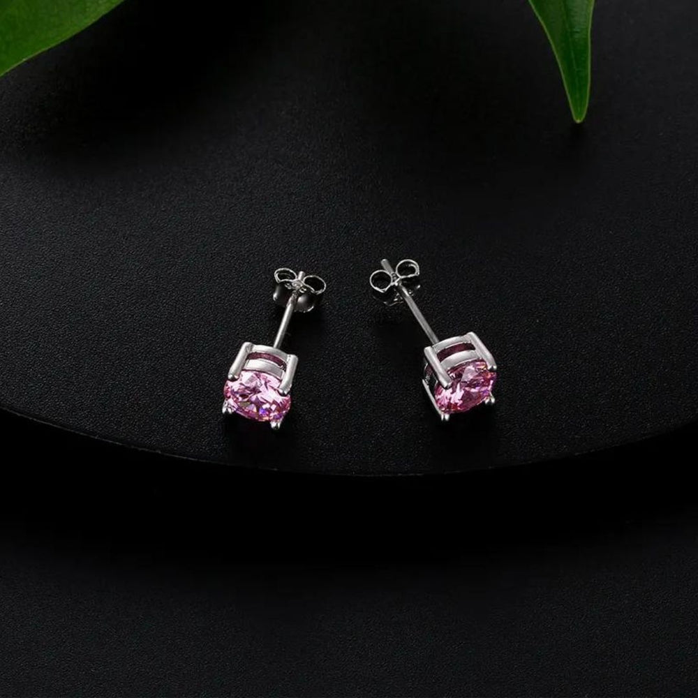The earrings feature pink sapphires set in 9K white gold settings, which enhance the pink hues of the stones. The main stone is a 5 x 4mm oval-shaped pink sapphire weighing approximately 0.45 carats. The setting is a claw setting, and the earrings are UK hallmarked and handcrafted. Additionally, the diamonds used are conflict-free, and the earrings are nickel-free. It is important to note that the weights, gem colors, and sizes mentioned are approximate and may vary slightly. Customers have described these earrings as 'excellent' and 'absolutely beautiful', praising the dazzling pink stones.