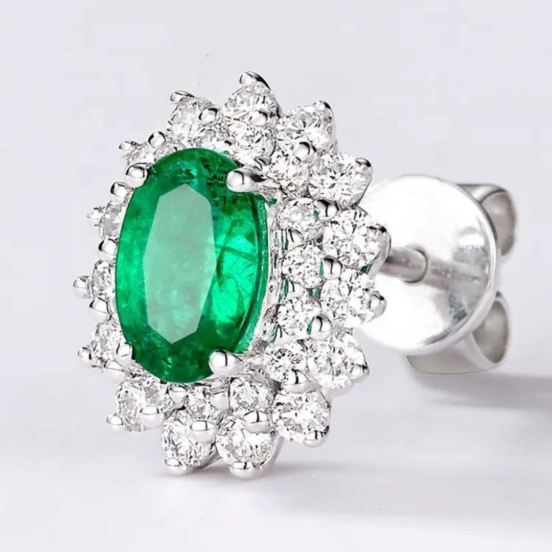 0.50Ct Lab Emerald Lab Diamond Cluster Studs Earrings In White Gold