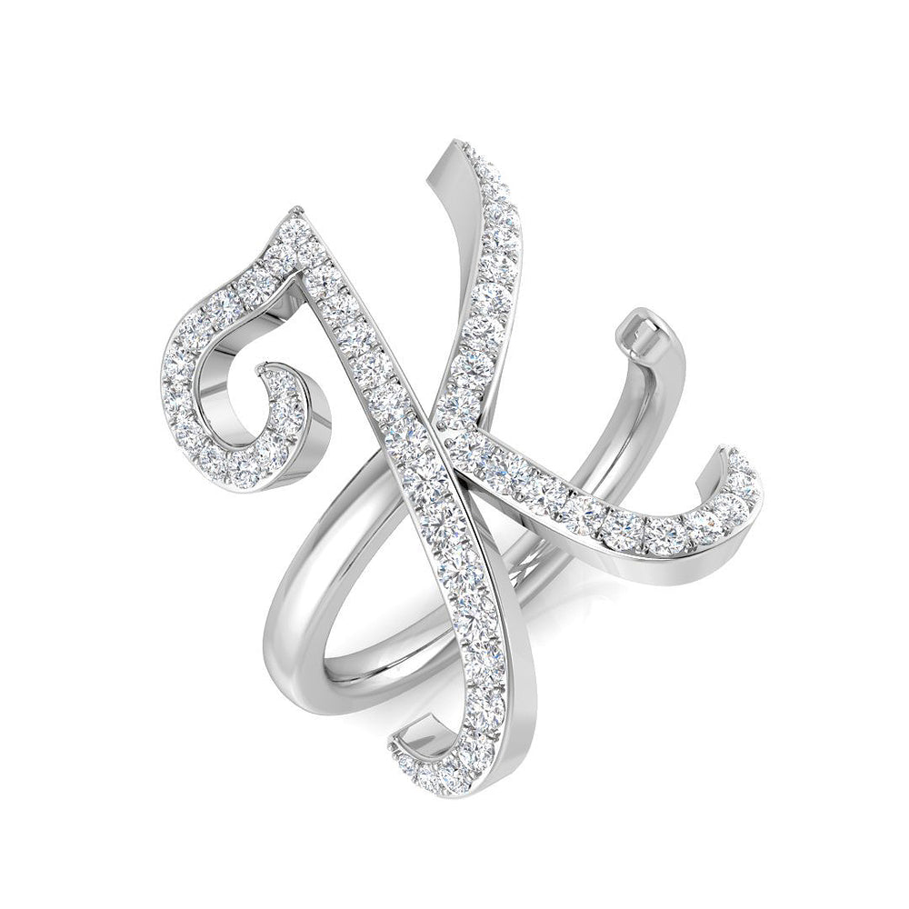 Make it personal with our Letter K Initial Ring, crafted in a flowing script design and encrusted with 0.52 carat of round brilliant diamonds in a micro pavé setting. This elegant piece combines timeless sparkle with sentimental charm — perfect as a gift or a statement of your own identity.