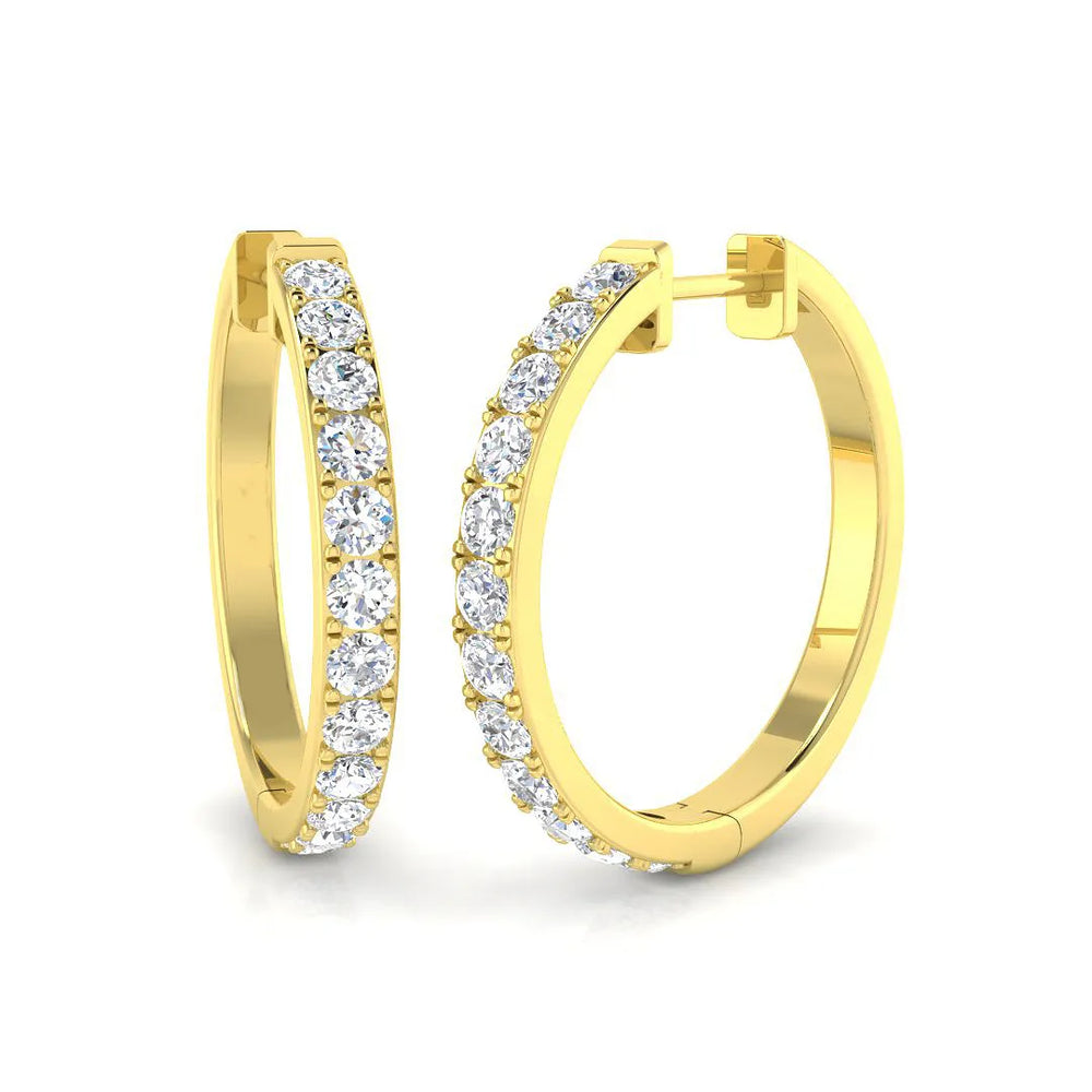 Sublimez votre collection d'une élégance intemporelle et d'un éclat incomparable avec ces magnifiques boucles d'oreilles créoles en diamants taille ronde . Ornées de diamants naturels F/VS-SI et de diamants de synthèse D/VVS , ces boucles d'oreilles sont disponibles en or blanc, jaune ou rose 9K/18K , ou en platine . Chaque boucle d'oreille est confectionnée artisanalement avec un savoir-faire exceptionnel pour un éclat, un raffinement et un confort absolus.