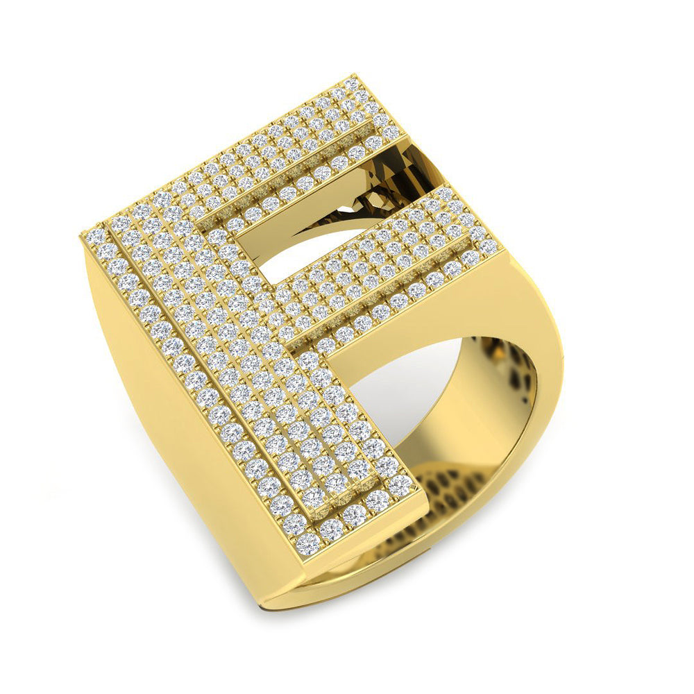 Attirez tous les regards avec cette bague audacieuse et étincelante, ornée d'une initiale sertie de diamants ronds brillants de 1,03 carat. Sa forme plate et son anneau large en font une pièce remarquable, idéale pour celles et ceux qui souhaitent afficher fièrement leur nom, leur identité ou leur initiale avec éclat.