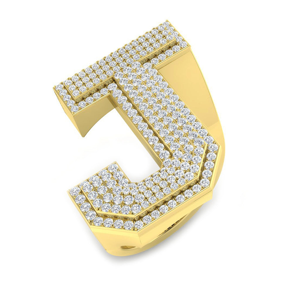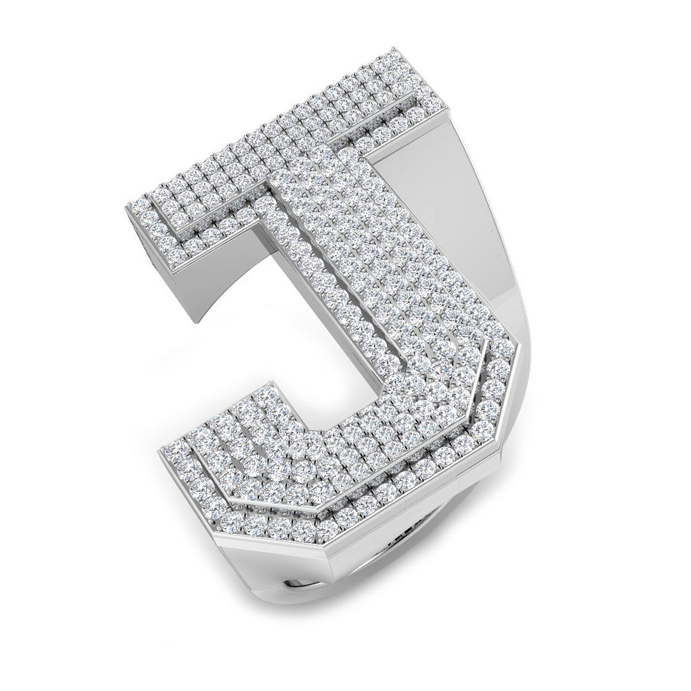 Attirez tous les regards avec cette bague initiale audacieuse et étincelante de 1,08 carat , ornée d'un grand J entièrement serti de diamants ronds brillants. Sa silhouette plate et son anneau large en font une pièce remarquable, idéale pour celles et ceux qui souhaitent afficher fièrement leur nom, leur identité ou leur initiale avec éclat.