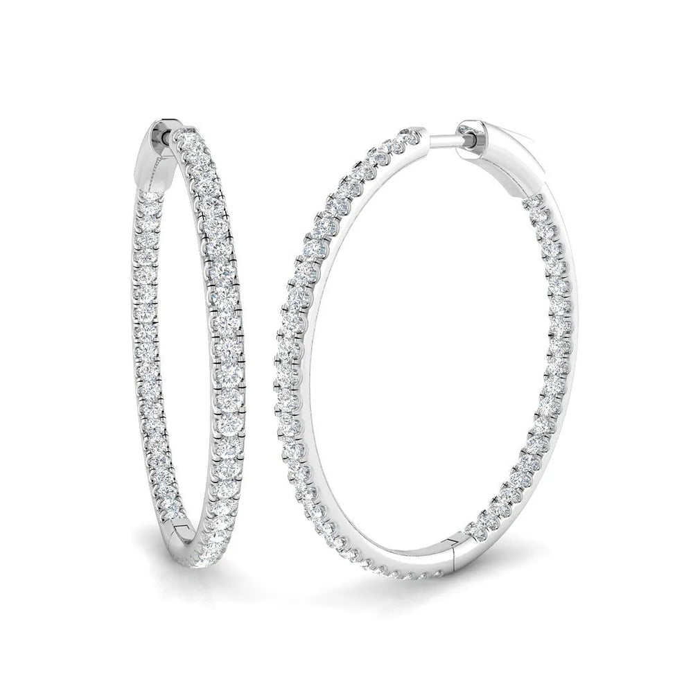 Add sophistication and timeless elegance to your jewelry collection with these 1.50Ct Total Round Cut Diamond Hoop Earrings. Featuring Natural F/VS-SI diamonds and Lab-Grown D/VVS diamonds, these earrings are available in 9K/18K White, Yellow, Rose Gold, and Platinum. The micro pavé setting around each diamond adds an extra layer of brilliance, creating a luxurious and modern design perfect for any occasion.