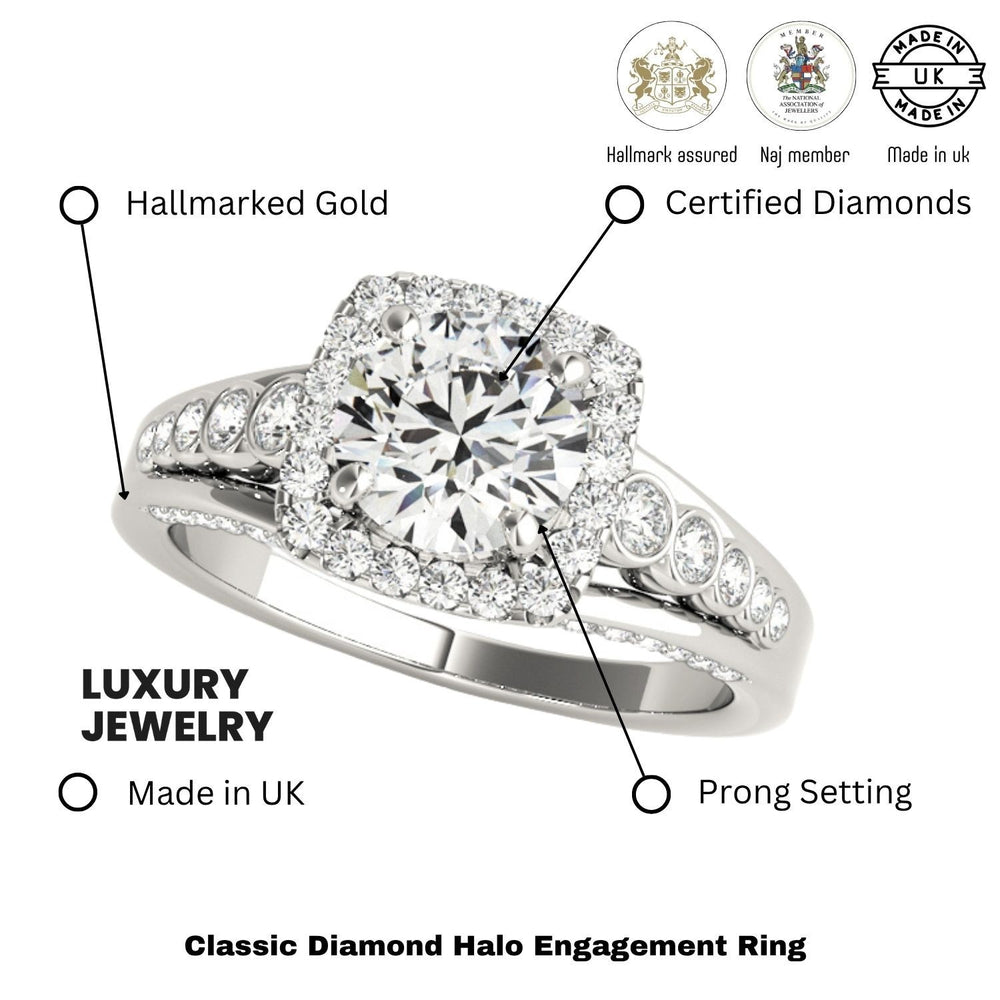 Available in 9K, 18K White, Yellow, Rose Gold, or Platinum, with total diamond weights ranging from 0.50Ct to 2.00Ct, each ring is handcrafted in the UK and hallmarked by the UK Assay Office for guaranteed quality and authenticity.