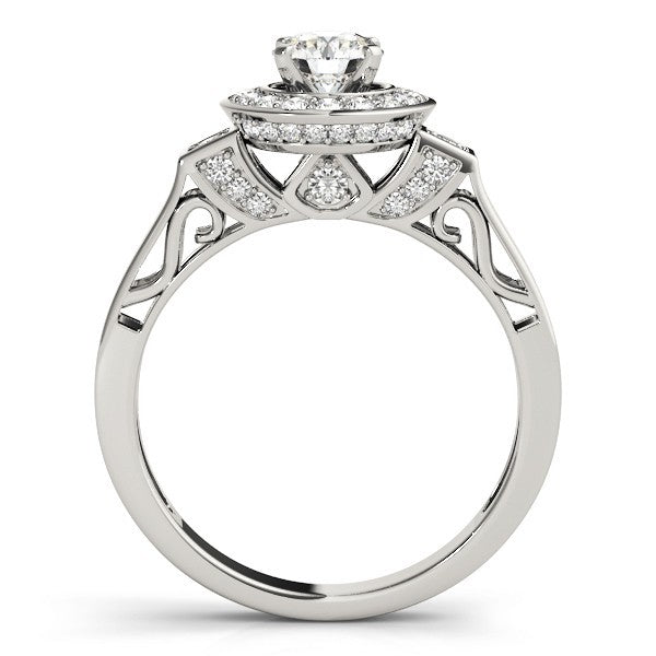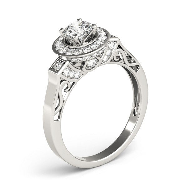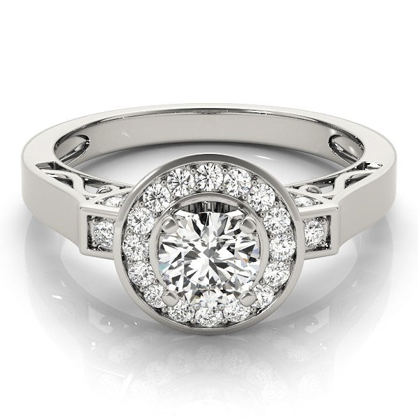 Lab Grown Round Diamond Halo Engagement Ring 18K White Gold