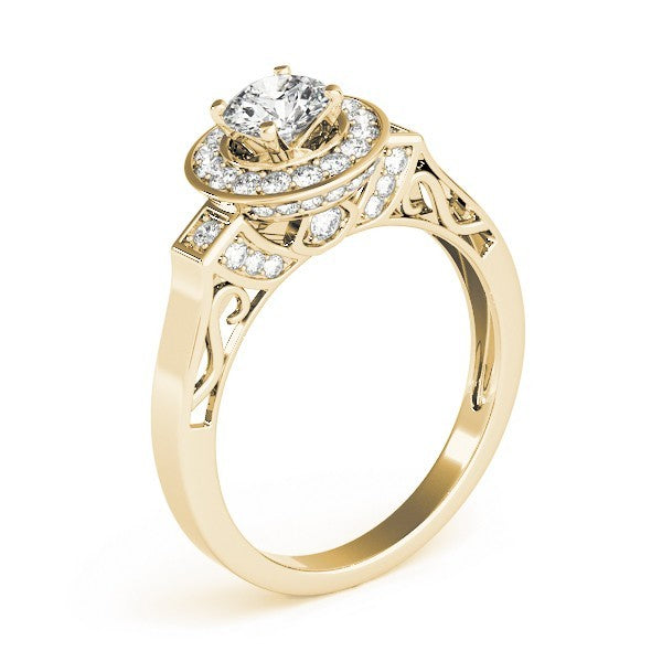 Celebrate your love with this timeless Round Cut Engagement Ring. The radiant round-cut center diamond (ranging from 0.50Ct to 2.00Ct) is set in a secure prong setting, while the side diamonds are also set in prong settings to allow maximum light exposure and brilliance. The prong setting ensures durability while enhancing the overall sparkle of the ring.