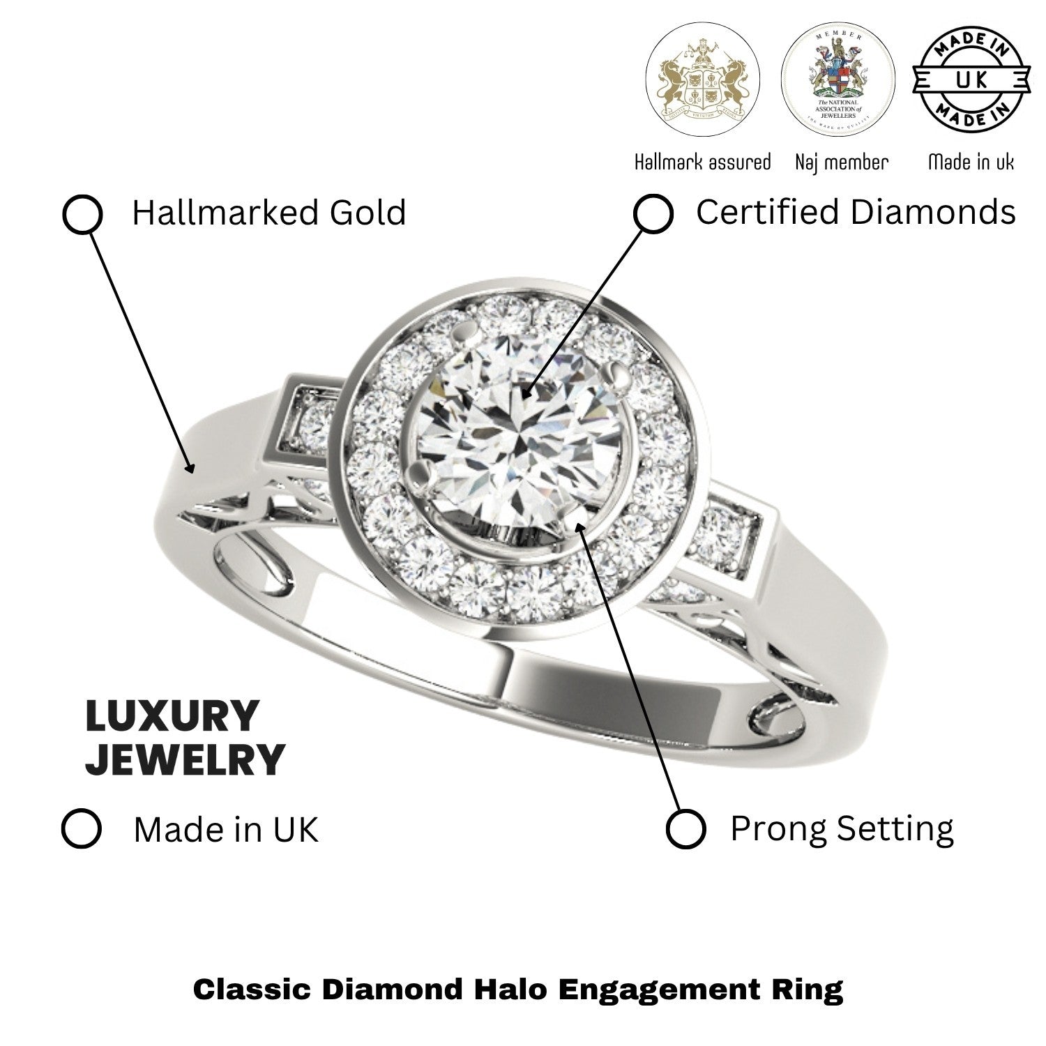 Available in 9K, 18K White, Yellow, Rose Gold, or Platinum, with total diamond weights ranging from 0.50Ct to 2.00Ct, each ring is handcrafted in the UK and hallmarked by the UK Assay Office for guaranteed quality and authenticity.