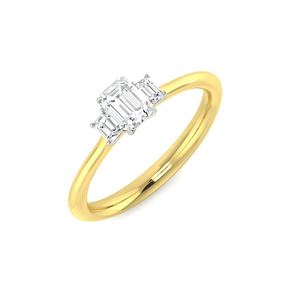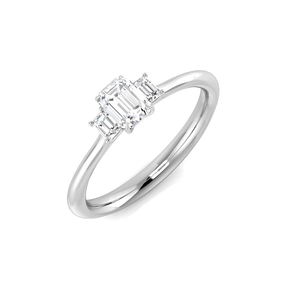 Célébrez l'amour avec la bague trois pierres en diamant de laboratoire, ornée d'un diamant taille émeraude d'une brillance exceptionnelle, de couleur D et de pureté VVS. Montée sur de l'or blanc, jaune ou rose 9 ou 18 carats, ou encore sur du platine 950, cette bague allie élégance et durabilité. Fabriquée artisanalement au Royaume-Uni, poinçonnée par un bureau de garantie britannique et assortie d'une garantie à vie, elle symbolise à merveille votre engagement.