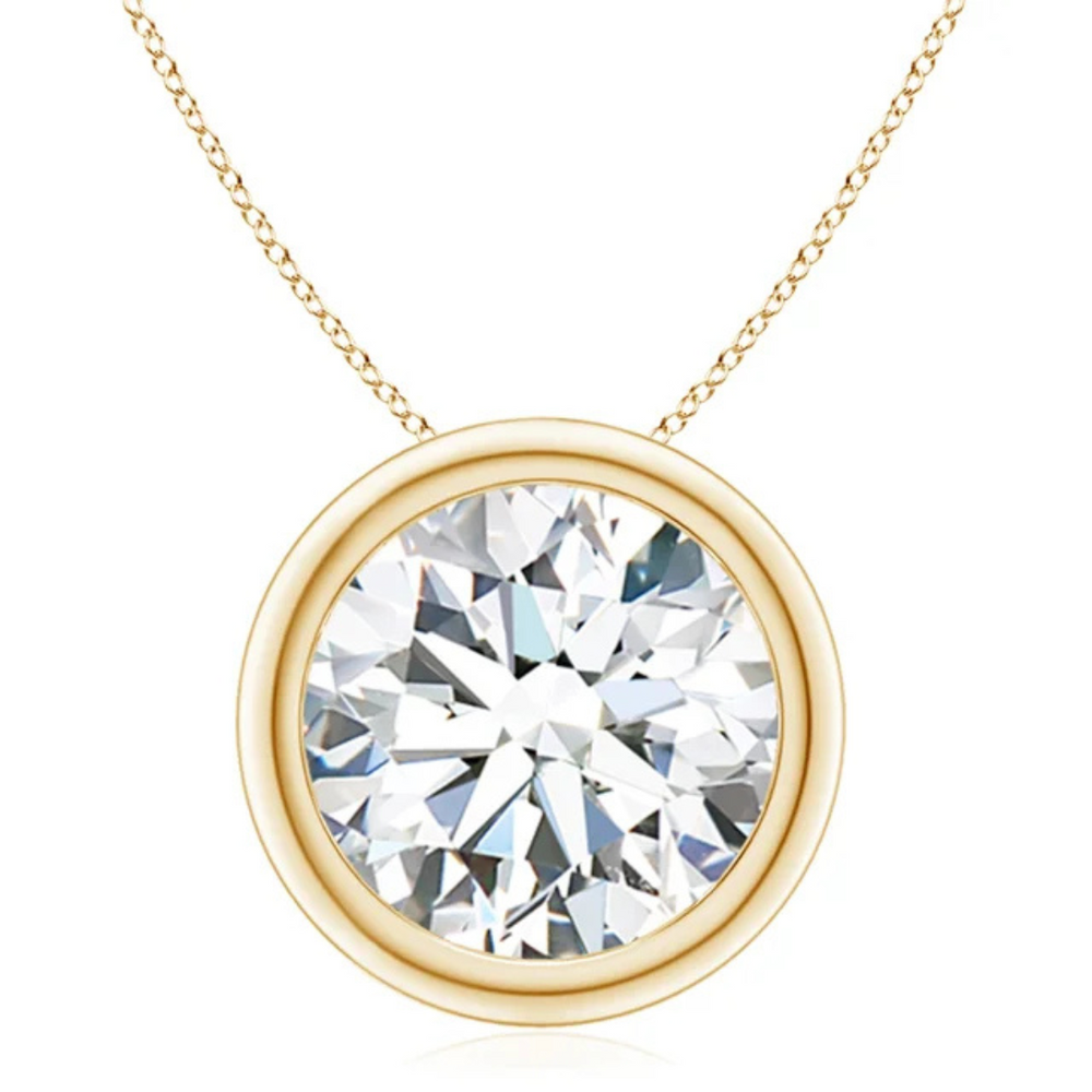 Discover timeless elegance with our exquisite Bezel-Set Round Diamond Solitaire Pendant Necklace (without chain).