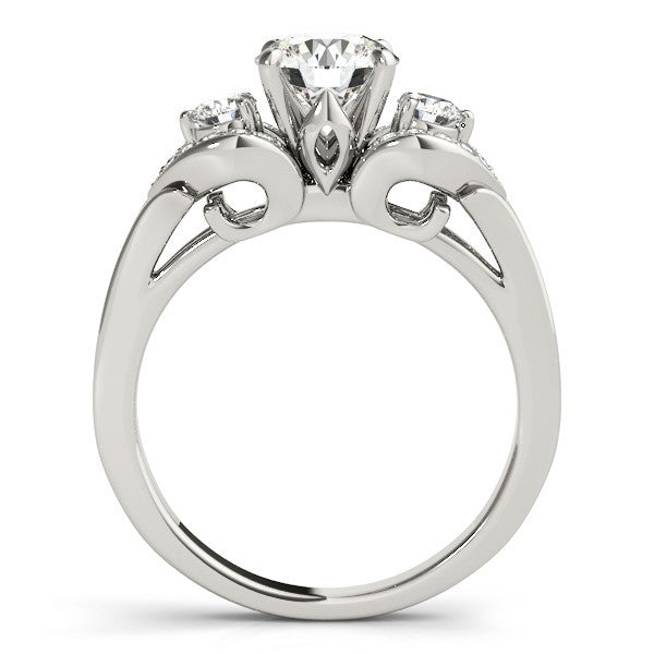 Style de sertissage : Sertissage à griffes trilogie (3 pierres) avec halo latéral (trois diamants représentant le passé, le présent et l’avenir)