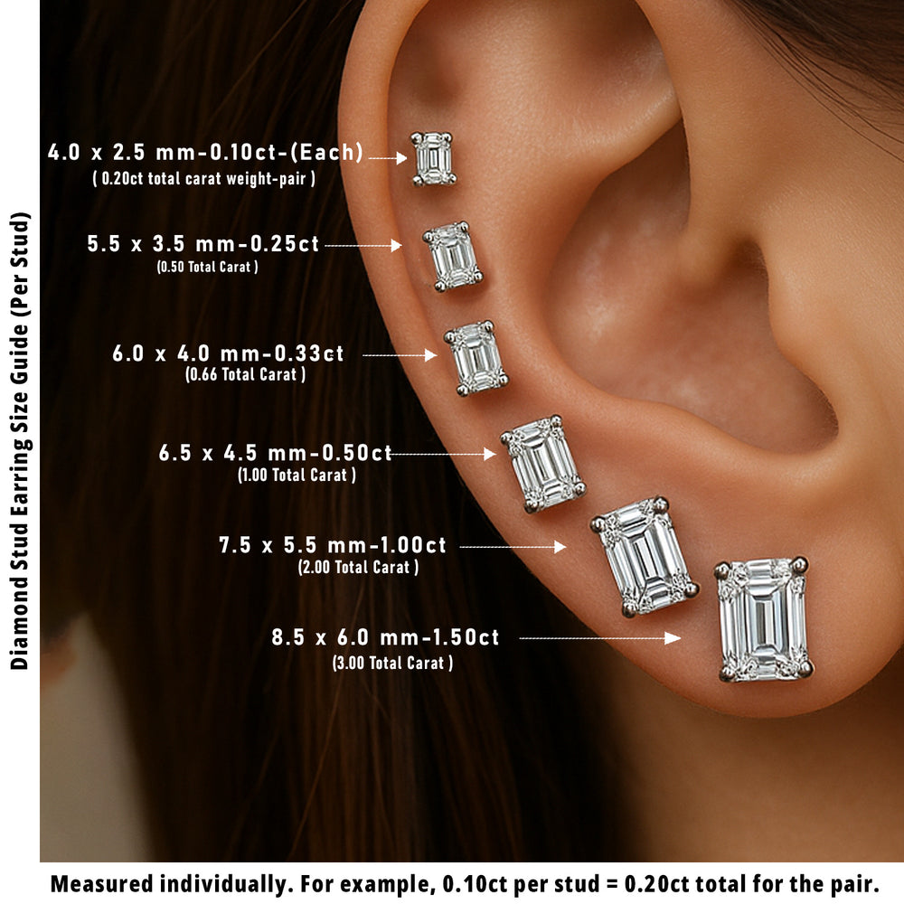 Add timeless sparkle to your collection with these stunning Lab Grown Emerald Cut Diamond Stud Earrings 💎✨. Crafted in your choice of 9K or 18K Yellow, White, Rose Gold, or Platinum, these earrings feature a total diamond weight of 2.00 Ct to 3.00 Ct with DE color & VVS clarity for maximum brilliance.