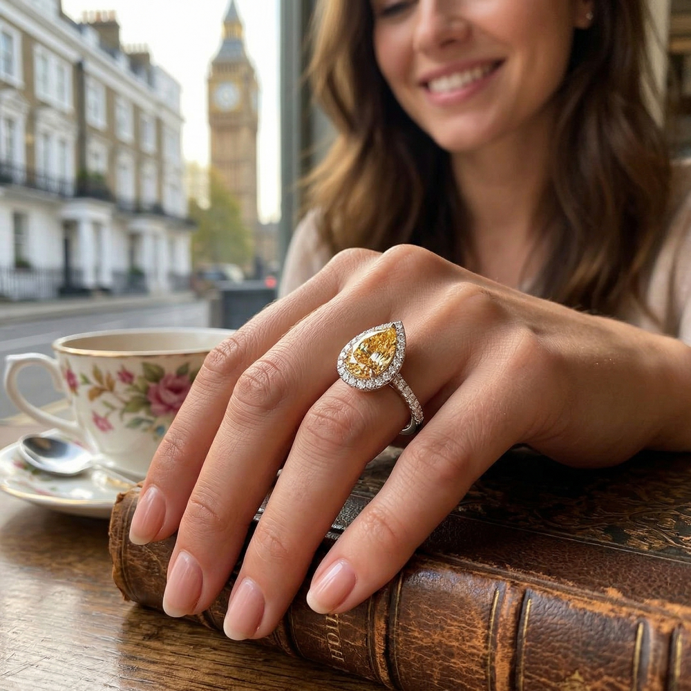 This ring is perfect for engagements or as a statement piece for any occasion. With options for Natural (F/VS) and Lab-Grown (D/VVS) diamonds, it is a beautiful and ethical choice for your special day.