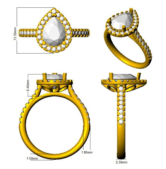 This Morganite Diamond Halo Engagement Ring features a captivating Pear-shaped Morganite at its center, surrounded by a brilliant halo of round diamonds that add a touch of sparkle. The soft peach-pink hue of the Morganite stone, combined with the brilliance of the diamonds, creates an elegant and romantic design. The classic setting, with a smooth platinum or gold band, ensures a timeless and durable piece.