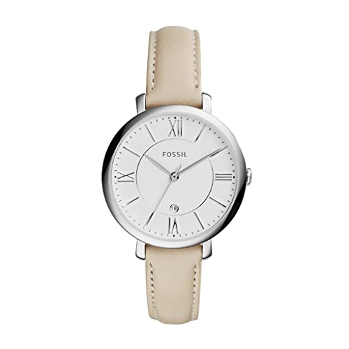 Fossil Women's Jacqueline Quartz Stainless Steel and Leather Three-Hand Date Watch, Color: Silver, White (Model: ES3793)