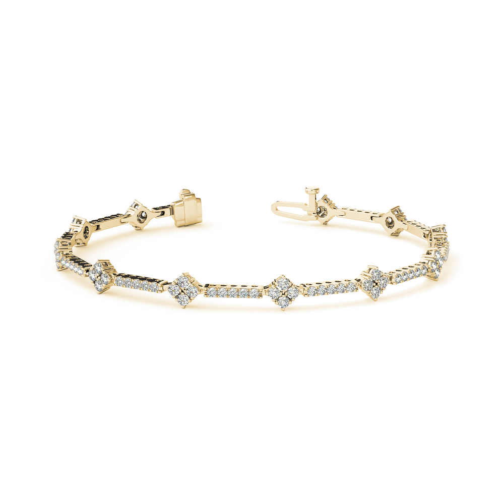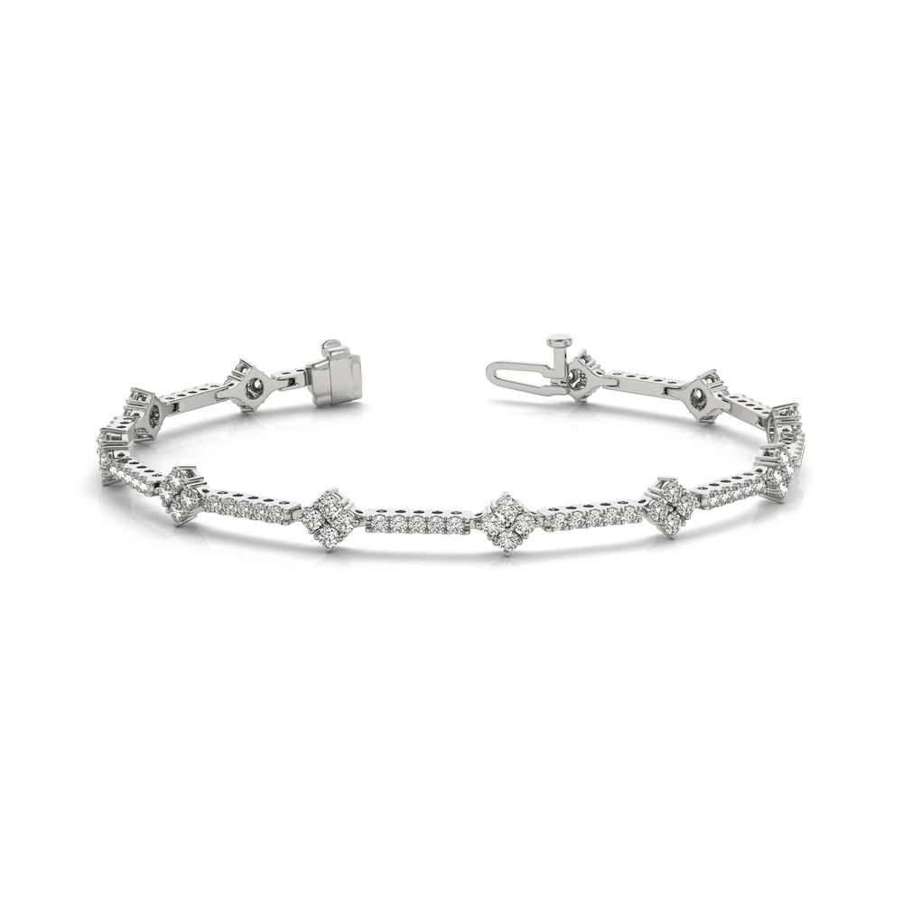 Add a touch of luxury to your collection with this geometric round diamond link tennis bracelet, beautifully crafted in your choice of 9K or 18K Yellow, White, Rose Gold, or Platinum. This elegant bracelet features round brilliant diamonds set in a square cluster stations connected by pavé-set diamond bars, creating a delicate, modern, artistic twist on the classic tennis bracelet, blending symmetry, sparkle, and sophistication.