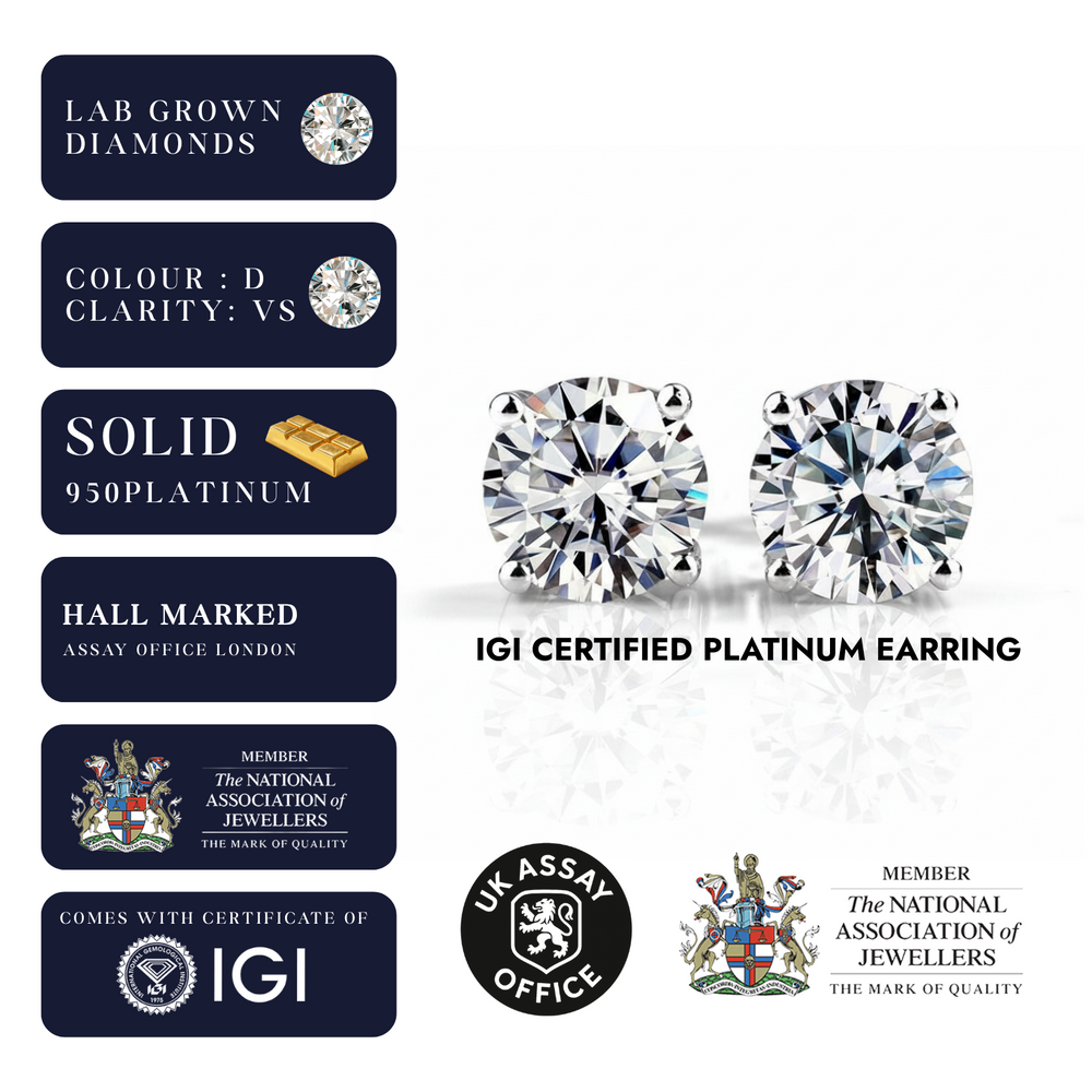 Ethically grown and expertly certified, these lab-grown diamonds offer the same beauty and durability as natural diamonds, while being a sustainable and responsible choice. Whether for everyday wear or as a meaningful gift, these platinum diamond studs are a versatile piece of jewellery that never goes out of style.