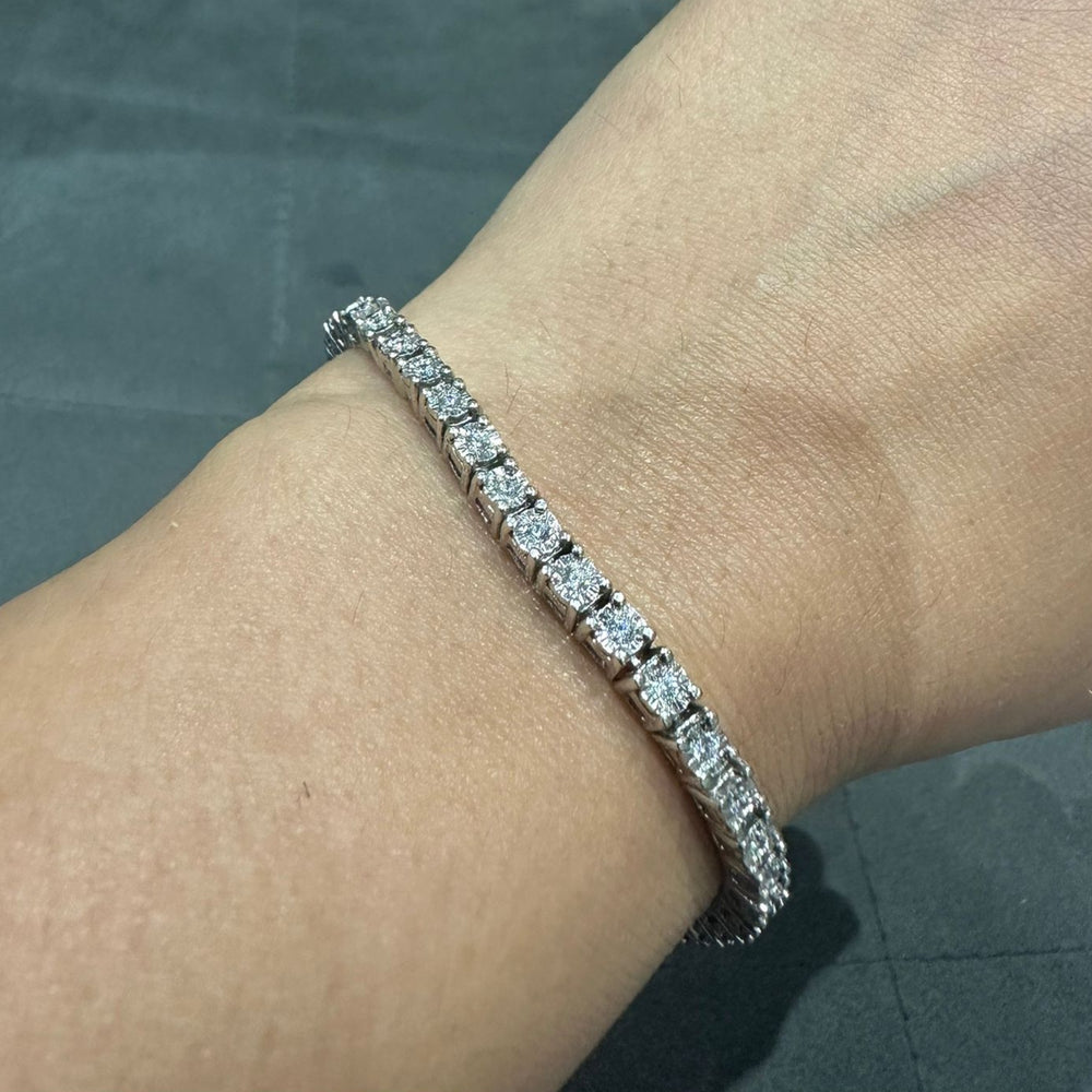 Sublimez votre style au quotidien avec ce magnifique bracelet tennis serti illusion , confectionné en argent sterling 925 de haute qualité. Conçu pour un éclat maximal, ce bracelet est orné de diamants ronds de synthèse totalisant 0,85 carat , chacun serti dans une monture illusion brillante qui accentue l'apparence de taille et de brillance.