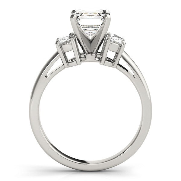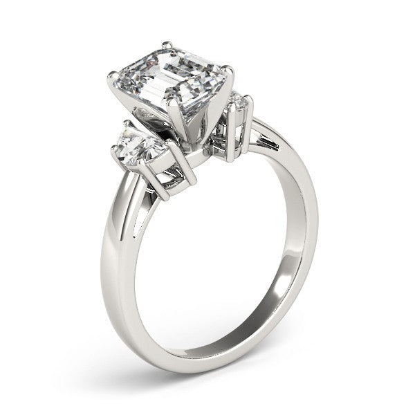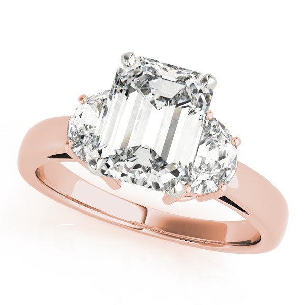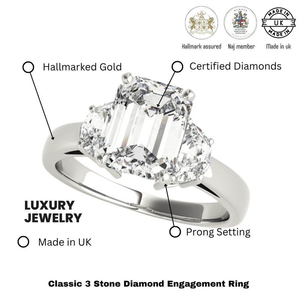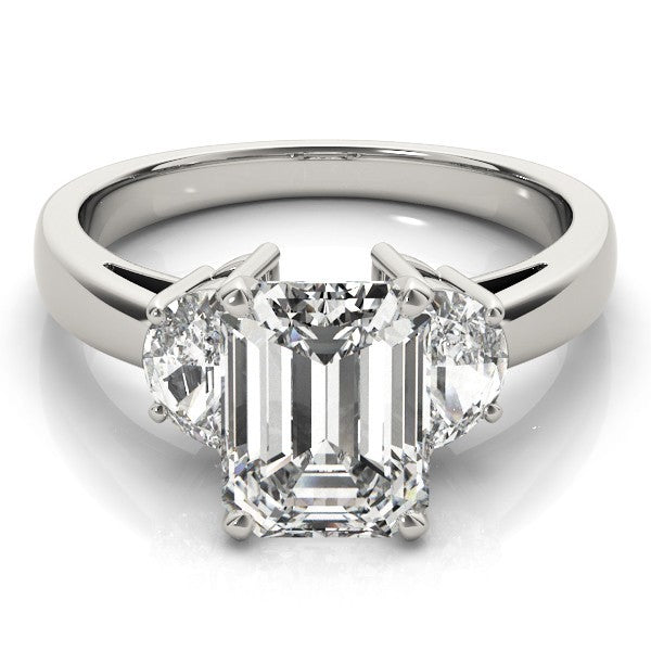 💍 Product Overview – Emerald Cut Trilogy Engagement Ring with Half Moon Side Diamonds