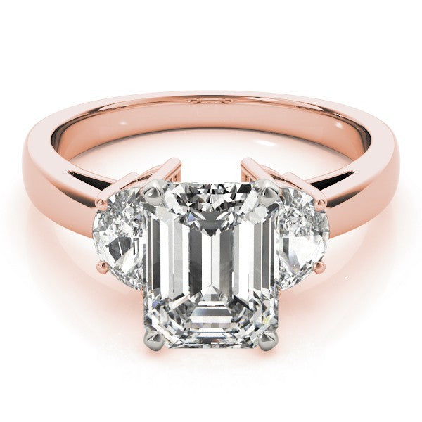 Celebrate your unique love story with this Emerald & Half Moon Trilogy Engagement Ring. The bold center emerald-cut diamond showcases timeless clarity and symmetry, while the half moon side stones add a graceful curve and soft sparkle that beautifully frames the centerpiece. Held securely in a traditional prong setting, this design blends modern minimalism with classic romance.