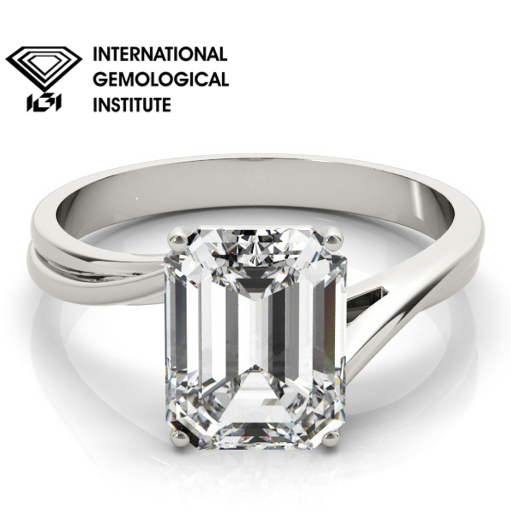 Célébrez l'amour avec la bague de fiançailles solitaire en diamant de laboratoire , ornée d'un magnifique diamant émeraude de couleur D et de pureté VVS . Disponible de 0,50 ct à 2,00 ct et réalisée en or blanc, jaune ou rose 9 ou 18 carats, ou en platine , elle est intemporelle, élégante et écoresponsable.