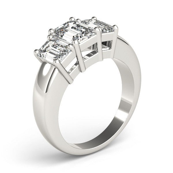 Emerald Cut Trilogy Engagement Ring in Prong Setting