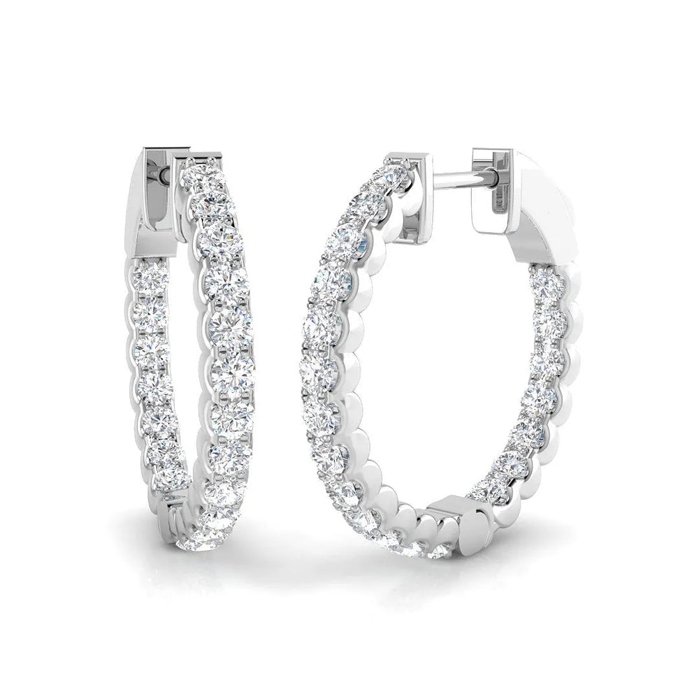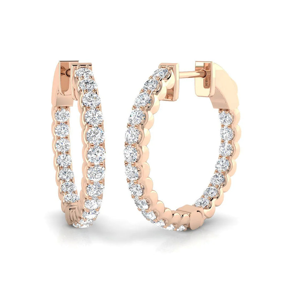 Sublimez votre collection avec ces magnifiques boucles d'oreilles créoles ornées de diamants ronds naturels (F/VS-SI) et de diamants de synthèse (D/VVS) . Confectionnées en or blanc, jaune ou rose 9 ou 18 carats, ou en platine , chaque boucle d'oreille est réalisée artisanalement avec un savoir-faire exceptionnel, gage de brillance, de raffinement et de qualité durable.