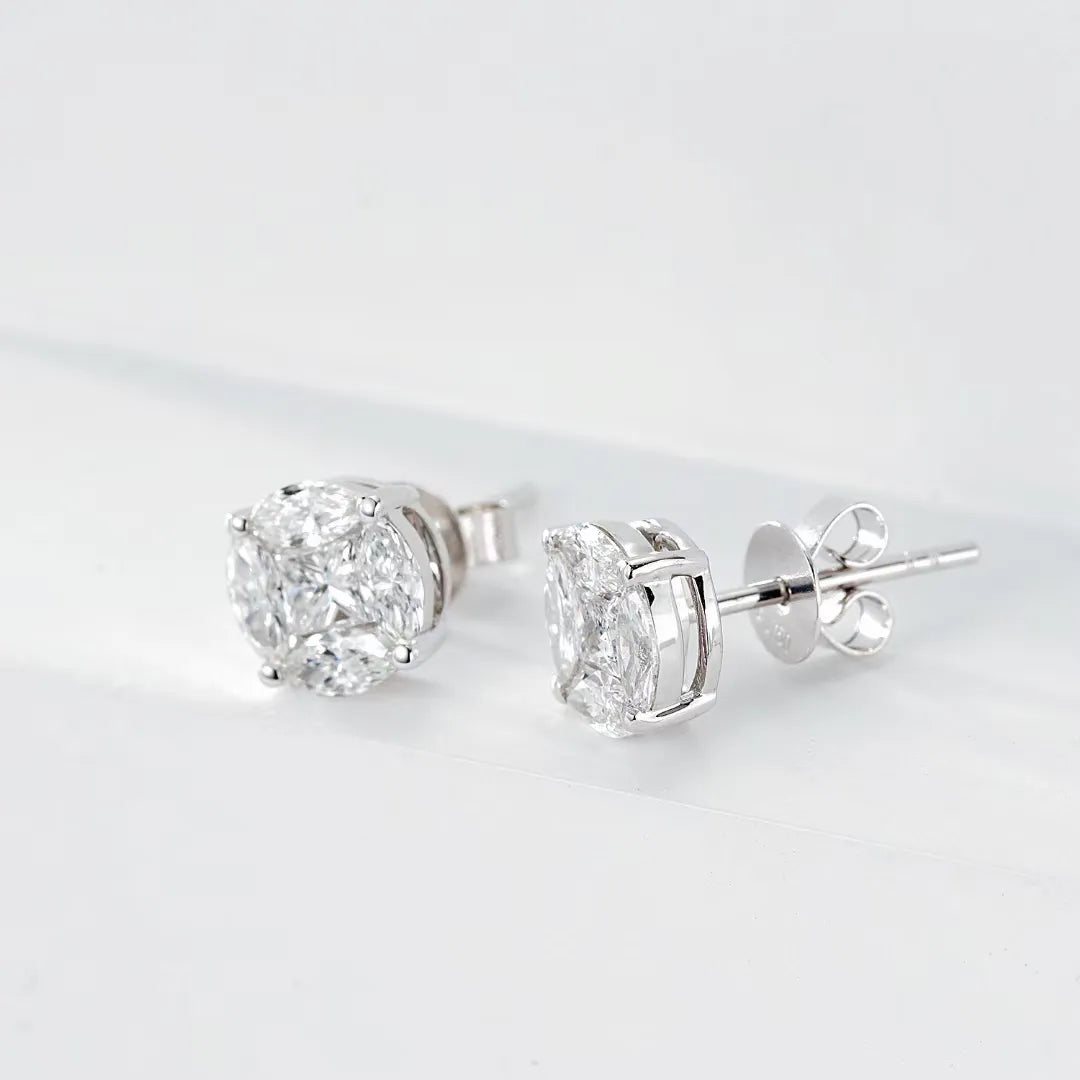 Natural Marquise and Princess Diamond Illusion Stud Earrings