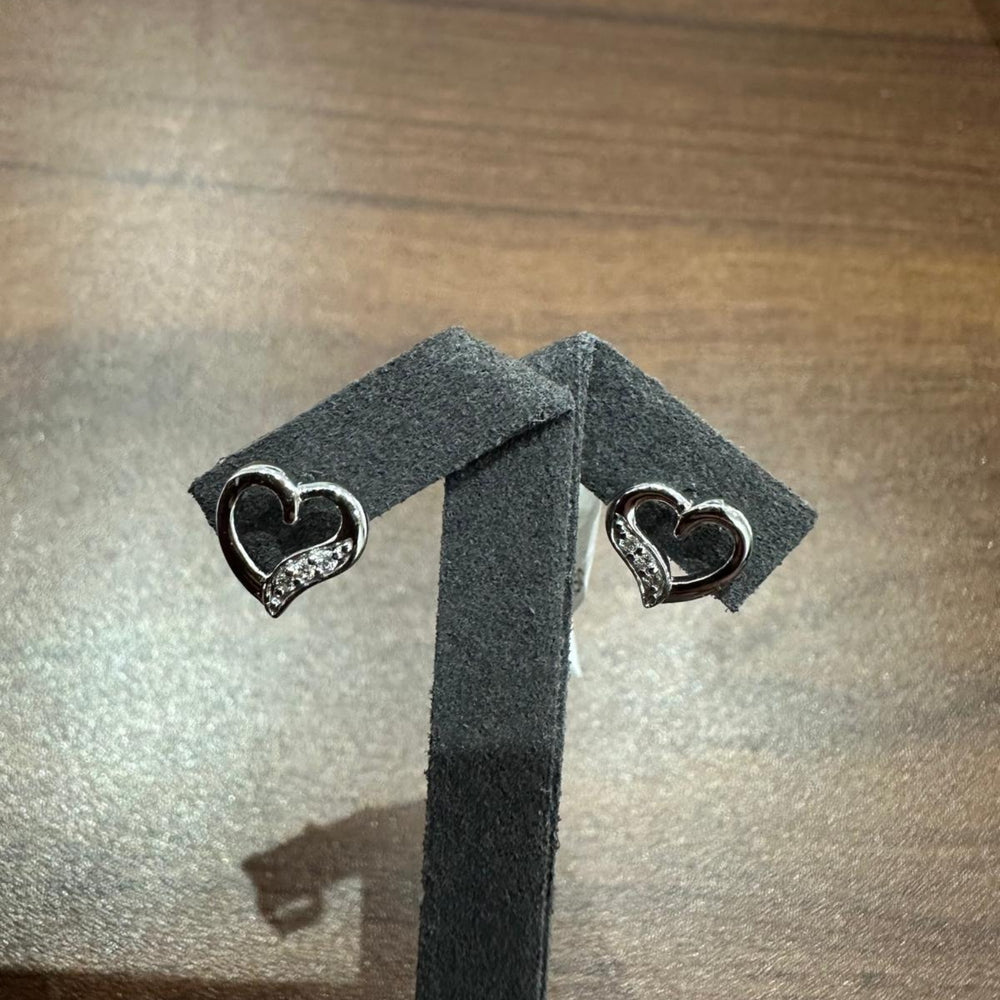 Sublimez votre collection de bijoux avec ces boucles d'oreilles puces en forme de cœur serties de diamants pavés , magnifiquement réalisées en or blanc 9 carats . Leur silhouette en forme de cœur ouvert est rehaussée de diamants ronds brillants naturels, sertis pavé avec raffinement, offrant un éclat subtil à chaque mouvement.