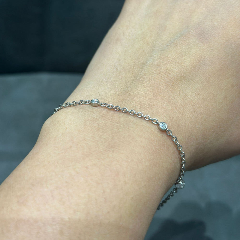 Sublimez votre style quotidien d'une touche d'éclat sans effort grâce à ce bracelet délicat et raffiné en argent sterling 925 , orné de diamants de laboratoire. Conçu avec des diamants ronds sertis clos et régulièrement espacés, ce bracelet offre une allure moderne et élégante, tout en conservant un charme intemporel.