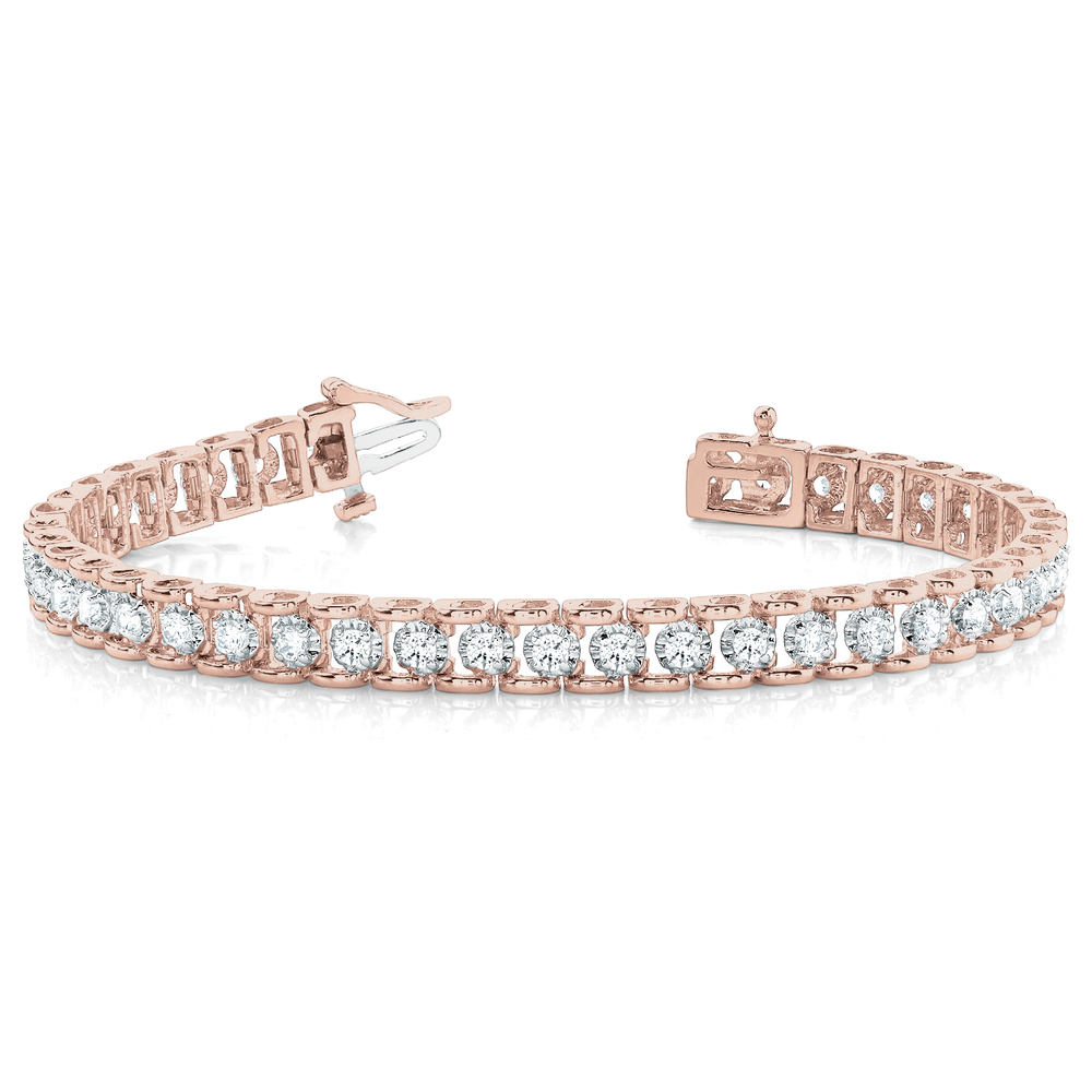 Add a touch of luxury to your collection with these stunning Lab Grown and Natural Diamond Tennis Bracelets. Crafted in your choice of 9K/18K (Yellow, White, Rose Gold), or Platinum, this type of bracelet typically features a continuous line of individually illusion set diamonds, often round cut, which are held together by a flexible chain or band. The diamonds are available in a range of carat weights, from 3.00ct to 8.00ct, providing customizable options to suit your style. The bracelet features DE/VVS quality lab grown diamonds or natural F/VS-SI quality diamonds, ensuring maximum sparkle. A secure, comfortable box clasp provides a perfect fit for every wrist.