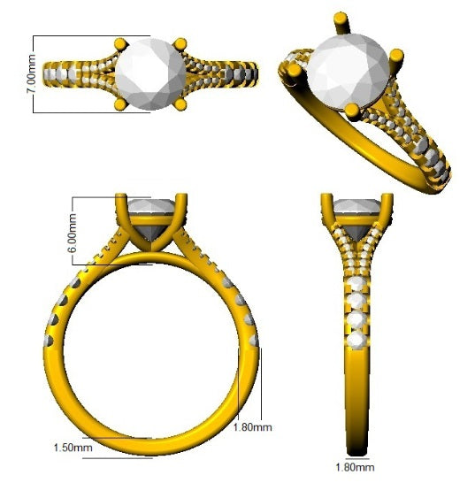 Designed to captivate from every angle, this elegant round diamond ring features a brilliant centre stone framed by a refined split-shoulder design. The band is adorned with precisely set round diamonds that flow seamlessly toward the centre, enhancing brilliance while adding depth and dimension.