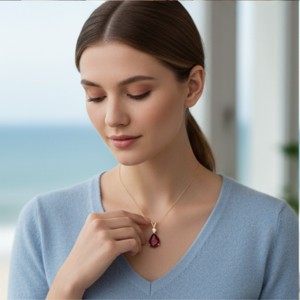 Elegant and sophisticated, this pear-shaped lab-grown emerald and diamond pendant is a timeless piece designed to elevate your everyday style. The deep, rich hue of the 10x8mm lab-grown emerald is perfectly complemented by the brilliant sparkle of a genuine round diamond accent.