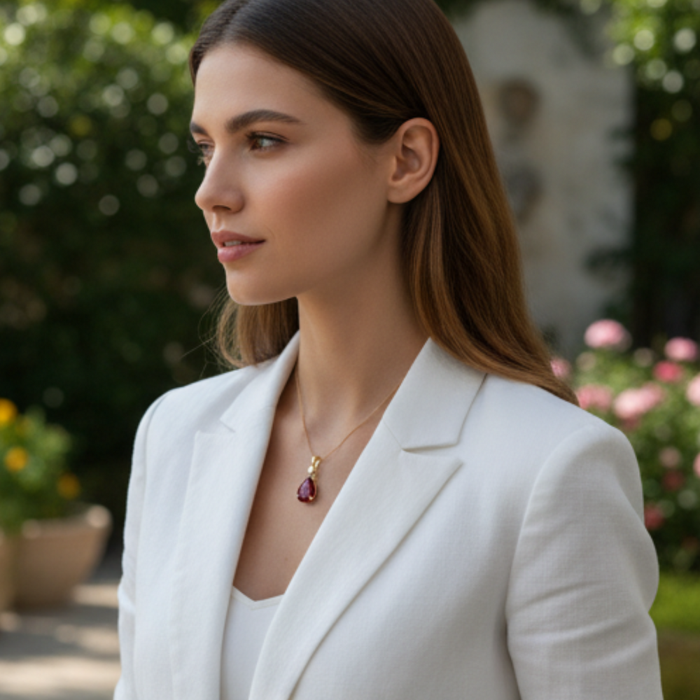 This stunning pendant is meticulously crafted in 18k rose gold, giving it a warm and luxurious glow that beautifully highlights the vibrant green emerald. The delicate gold chain rests naturally on your collarbone, creating a subtle yet impactful statement.