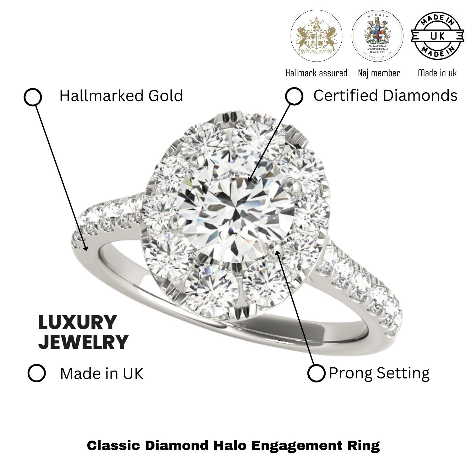 Available in 9K, 18K White, Yellow, Rose Gold, or Platinum, with total diamond weights ranging from 1.00Ct to 2.00Ct, each ring is handcrafted in the UK and hallmarked by the UK Assay Office for guaranteed quality and authenticity.