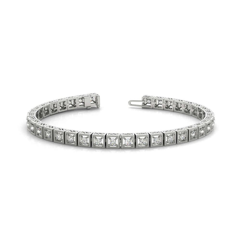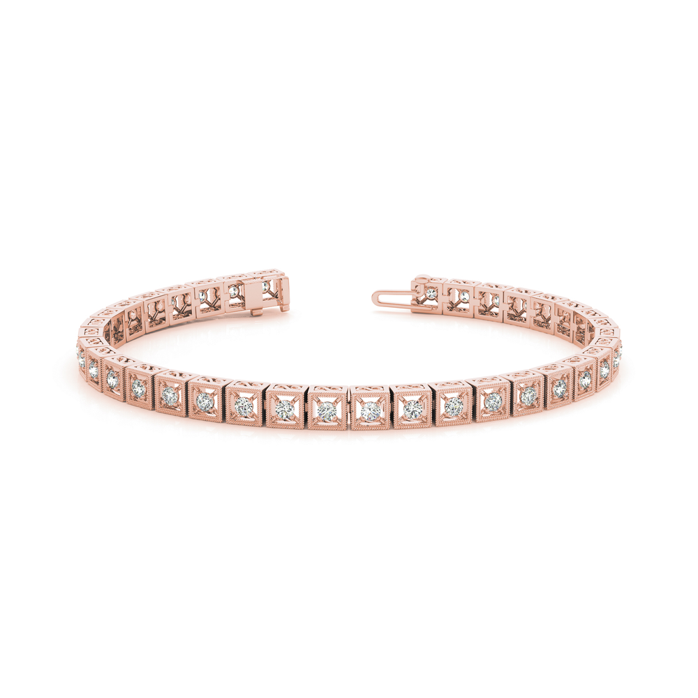 Add a touch of luxury to your collection with this classic round vintage prong-set diamond tennis bracelet, beautifully crafted in your choice of 9K or 18K Yellow, White, Rose Gold, or Platinum. This timeless bracelet features brilliant round diamonds held securely in elegant prong settings, featuring round cut diamonds set in milgrain square, finely detailed, offering a sophisticated, vintage-inspired design.