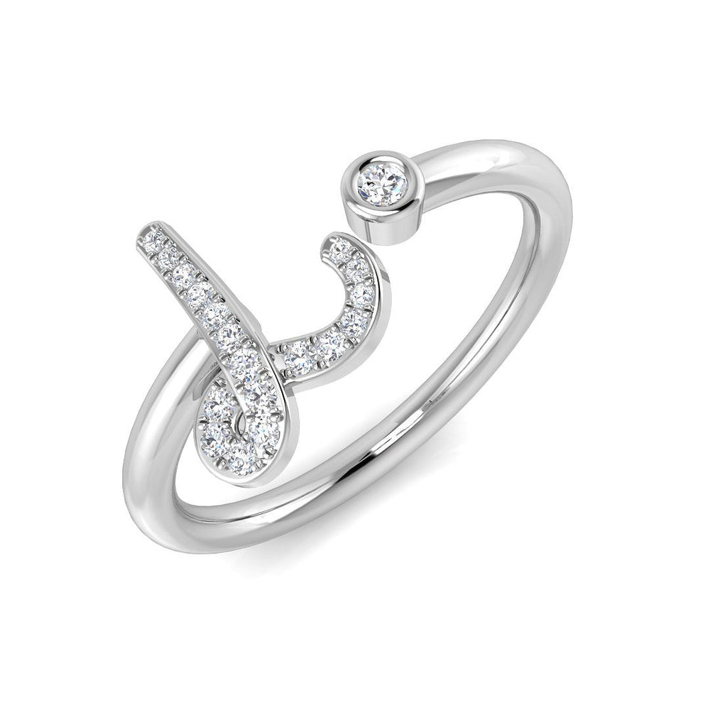 Add a touch of personal elegance with this beautifully designed script L initial ring, featuring 0.08 carat of round brilliant diamonds. The graceful letter “L” sparkles with micro pavé-set diamonds, while a bezel-set solitaire accent adds modern flair. Crafted in your choice of gold or platinum, this ring is the perfect expression of identity and style.