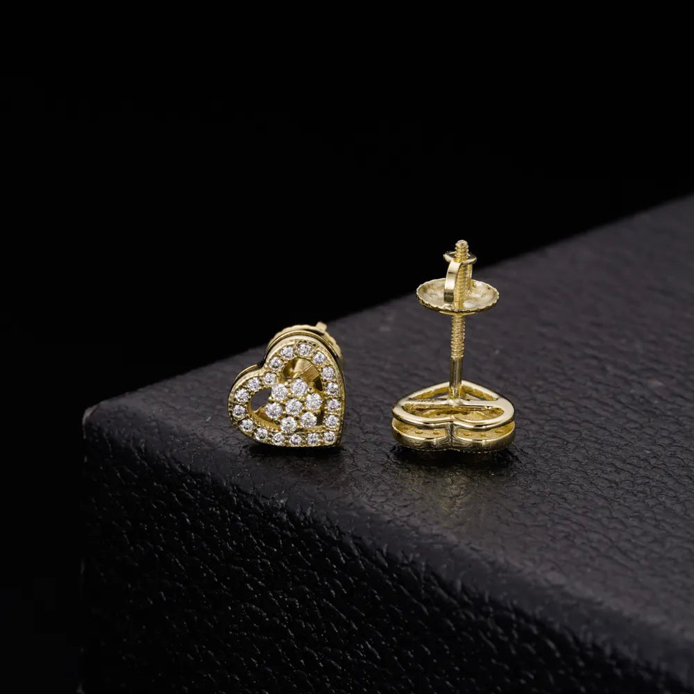 Experience the timeless elegance of our 0.15 carat round shape diamond heart solitaire stud earring. Handcrafted with natural F/SI diamonds, this earring features a pave setting for added sparkle. Made with 9k gold, it's a stunning addition to any jewelry collection. Make a statement with these beautiful earrings.