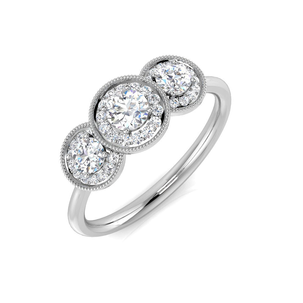 Celebrate love with the Lab-Grown 3-Stone Diamond Ring, featuring a dazzling Round Cut diamond in D color and VVS clarity. Set in your choice of 9K or 18K white, yellow, or rose gold, or luxurious 950 platinum, this ring blends elegance with sustainability. Handcrafted in the UK, hallmarked by a UK Assay Office, and backed by a lifetime warranty, it’s a perfect symbol of your commitment.