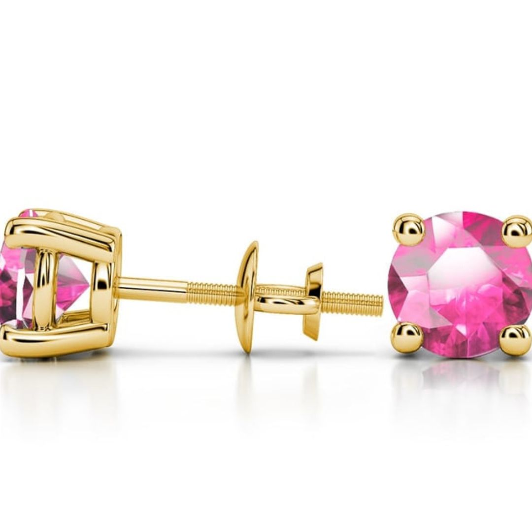 0.45Ct Sapphire Pink Round Solitaire Studs Earring in Yellow Gold
