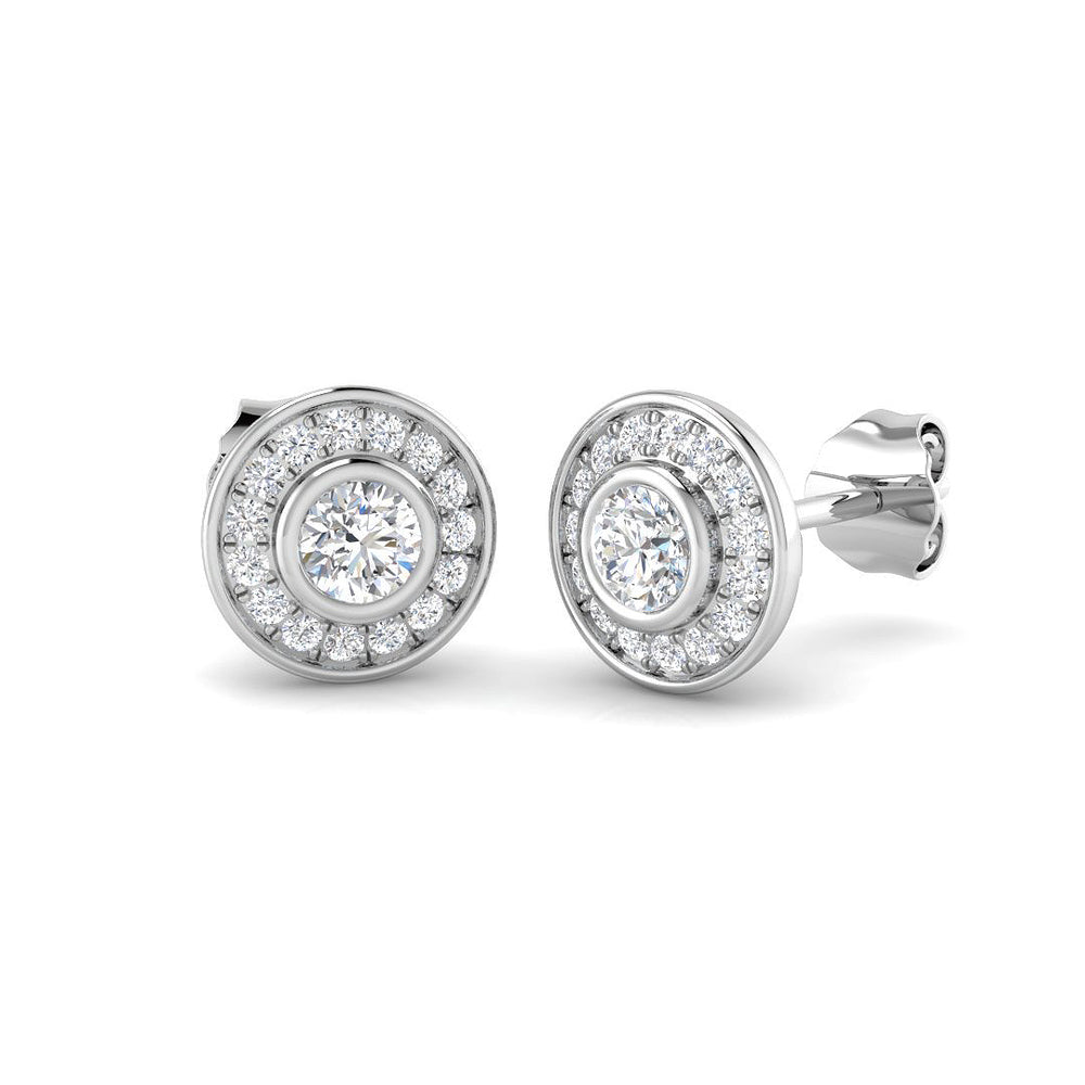 Add a touch of brilliance to your jewelry collection with these Lab Grown Round Cut Diamond Halo Earrings ✨💎. Set in 9K or 18K Yellow, White, Rose Gold and Platinum, these earrings feature a dazzling 0.50 Carat round cut diamond in a halo design. The DE/VVS clarity lab-grown diamonds are bezel-set for a sleek, modern finish.