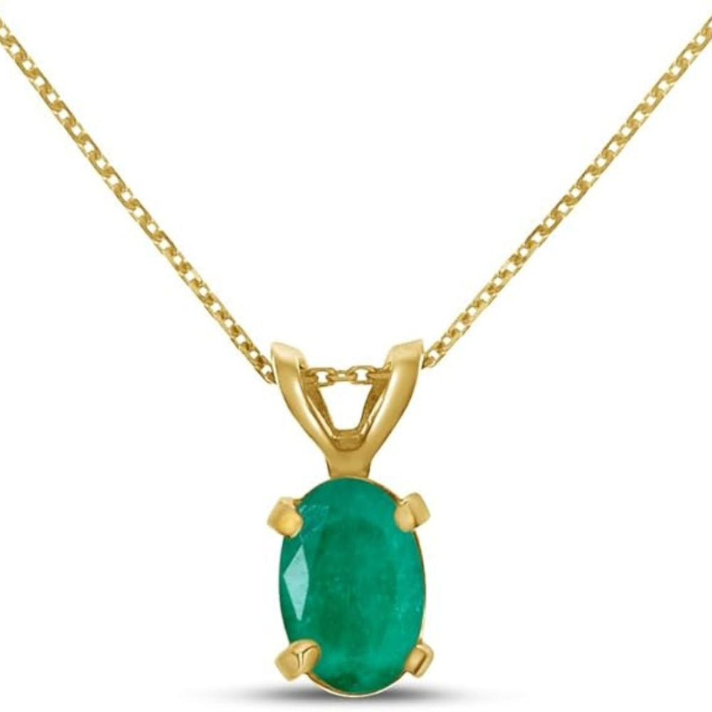This product is a piece of jewelry featuring an oval-shaped Emerald as the main stone, set in 9K Gold with a claw setting.