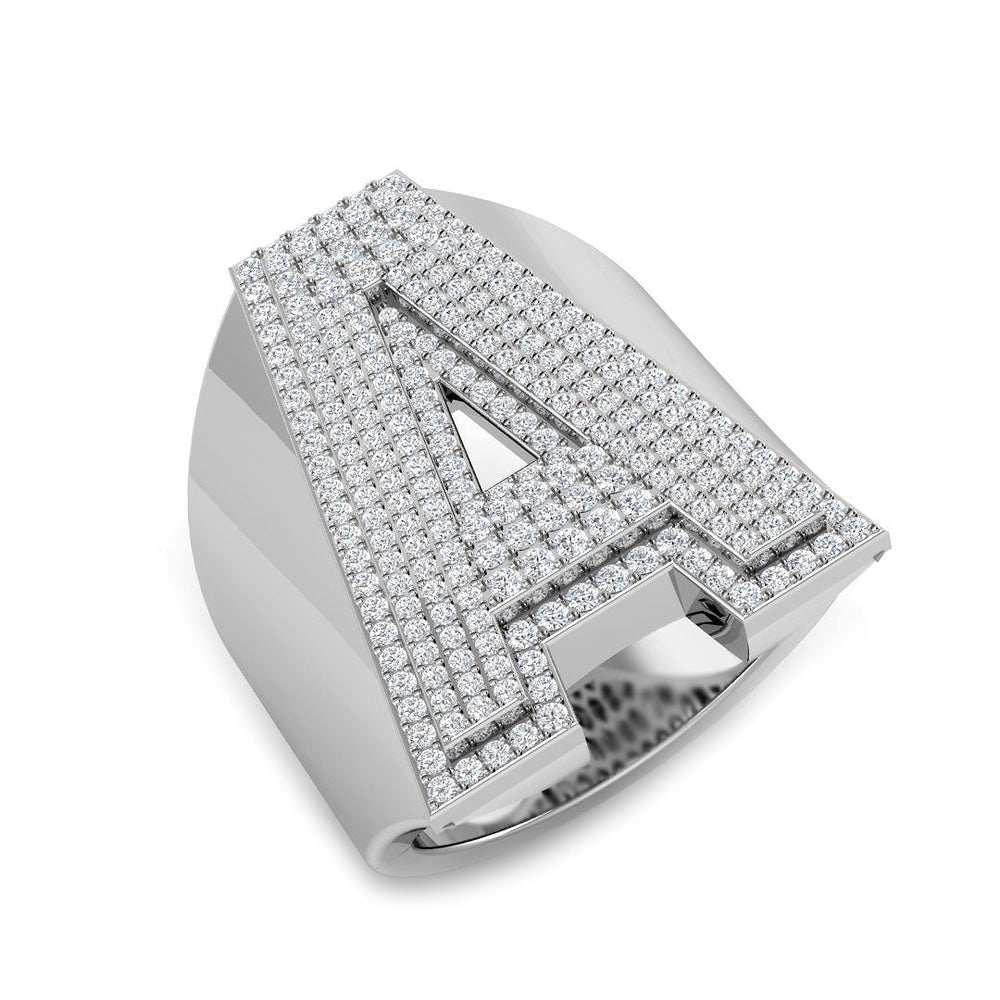 Command attention with this bold and brilliant 1.00 carat iced-out initial ring, featuring a large block-style letter A fully encrusted with round brilliant diamonds. Crafted in a flat-top silhouette with a wide band, this standout statement ring is perfect for those who want to wear their name, identity, or initial with pride and sparkle.
