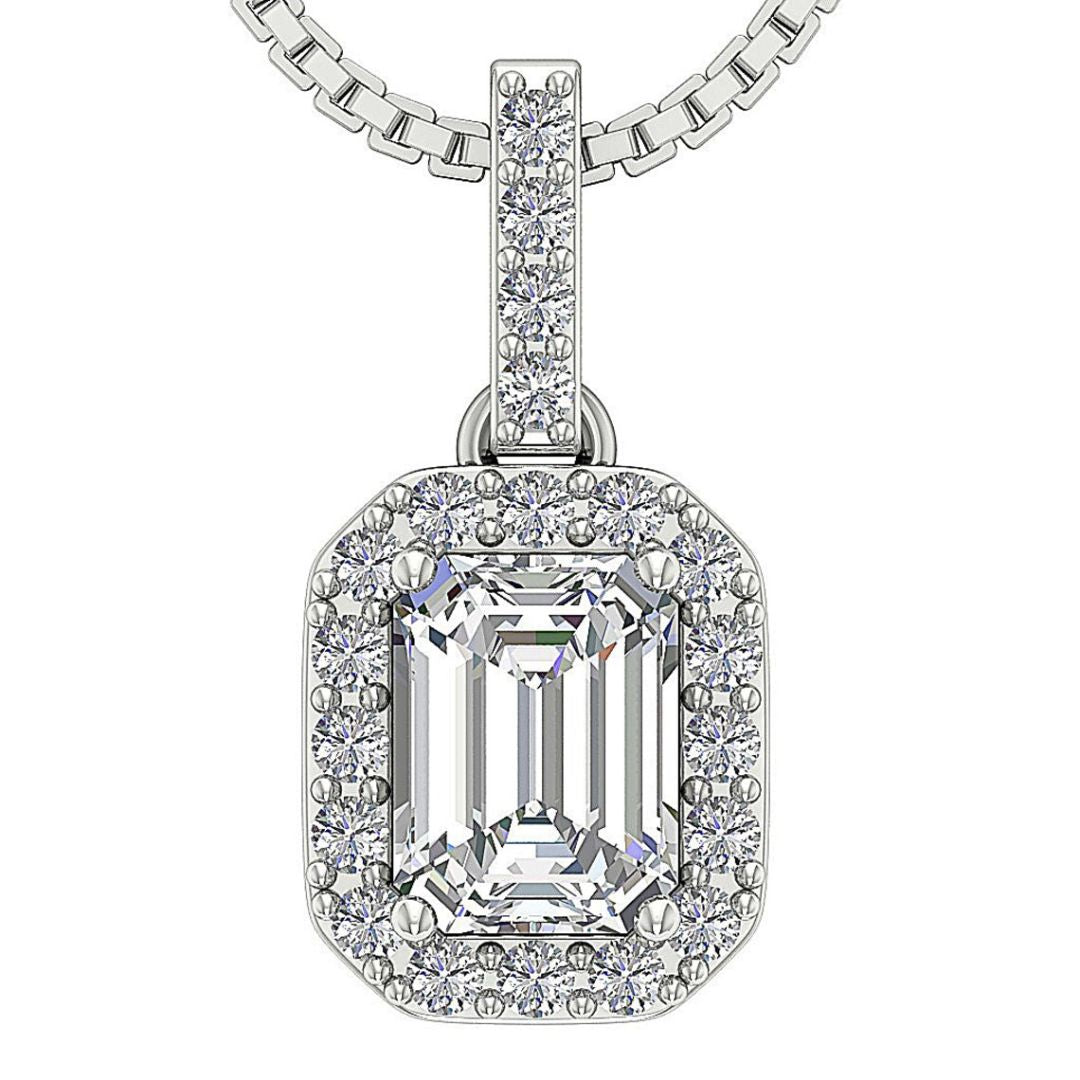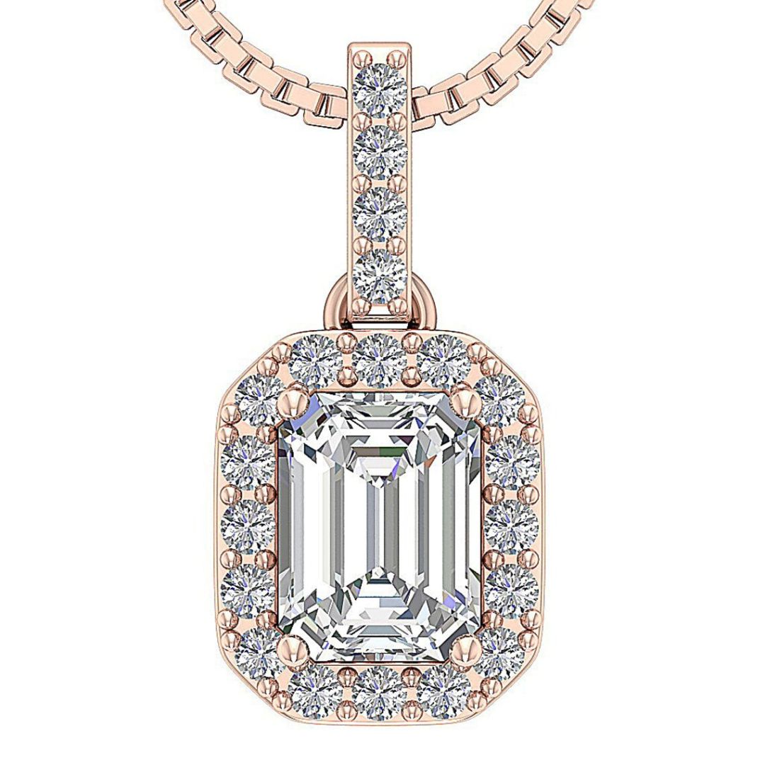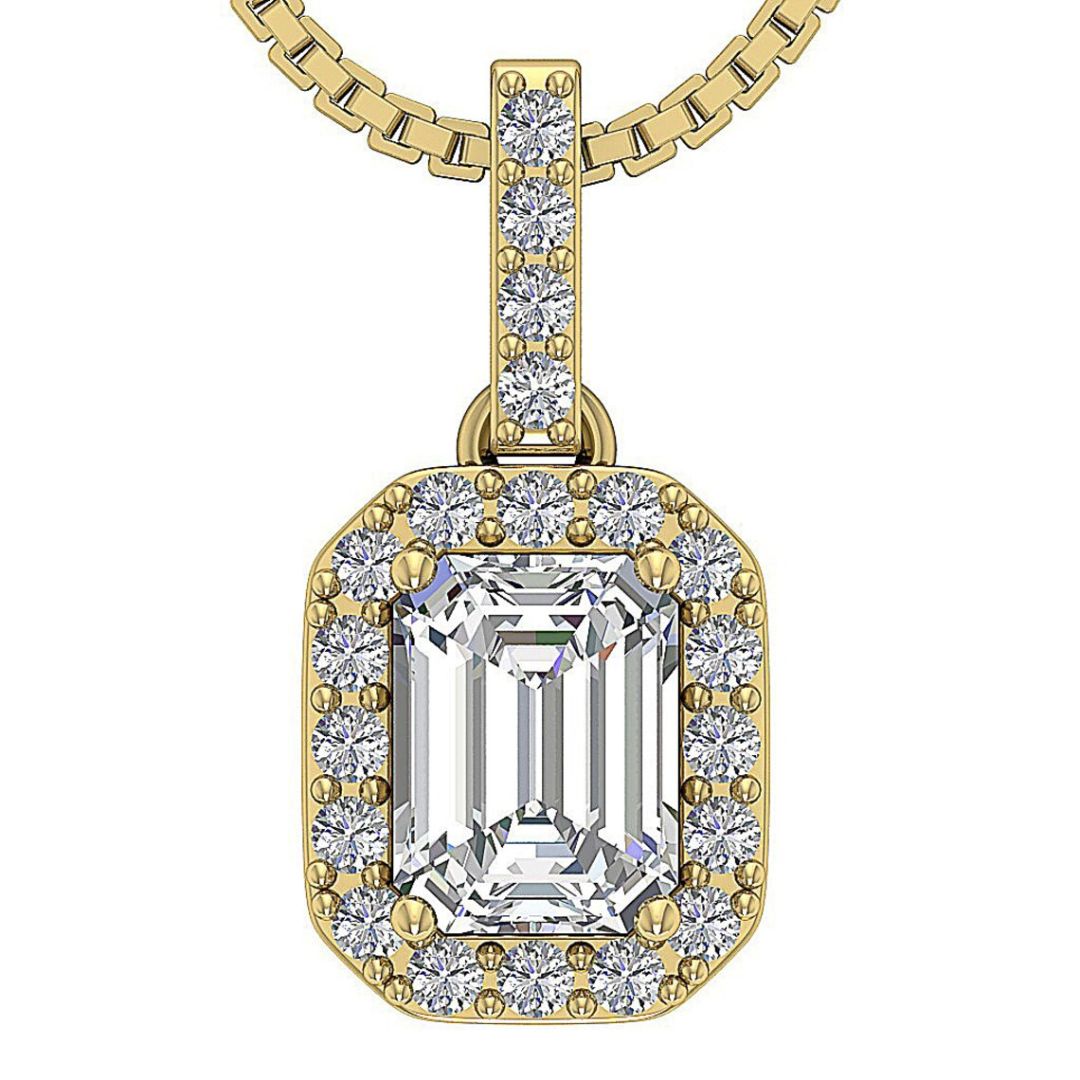 1.38Ct Emerald Solitaire Lab Grown Diamond Pendant Necklace in Gold