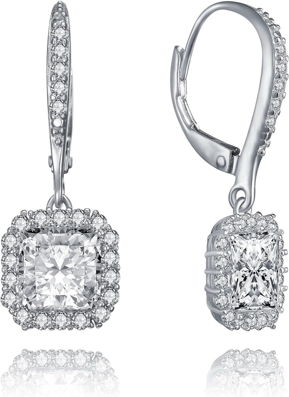These elegant halo drop earrings feature exquisite princess-cut center stones that will elevate any outfit with style. Crafted with 18K white gold, these sophisticated earrings are perfect for your most special occasions.