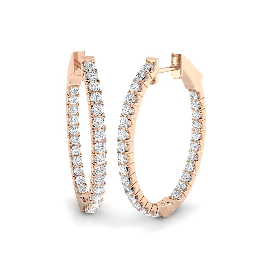 1.60 Ct Natural & Lab-Grown Round Diamond Hoop Earrings | Pavé Set | 9K/18K Gold, Platinum