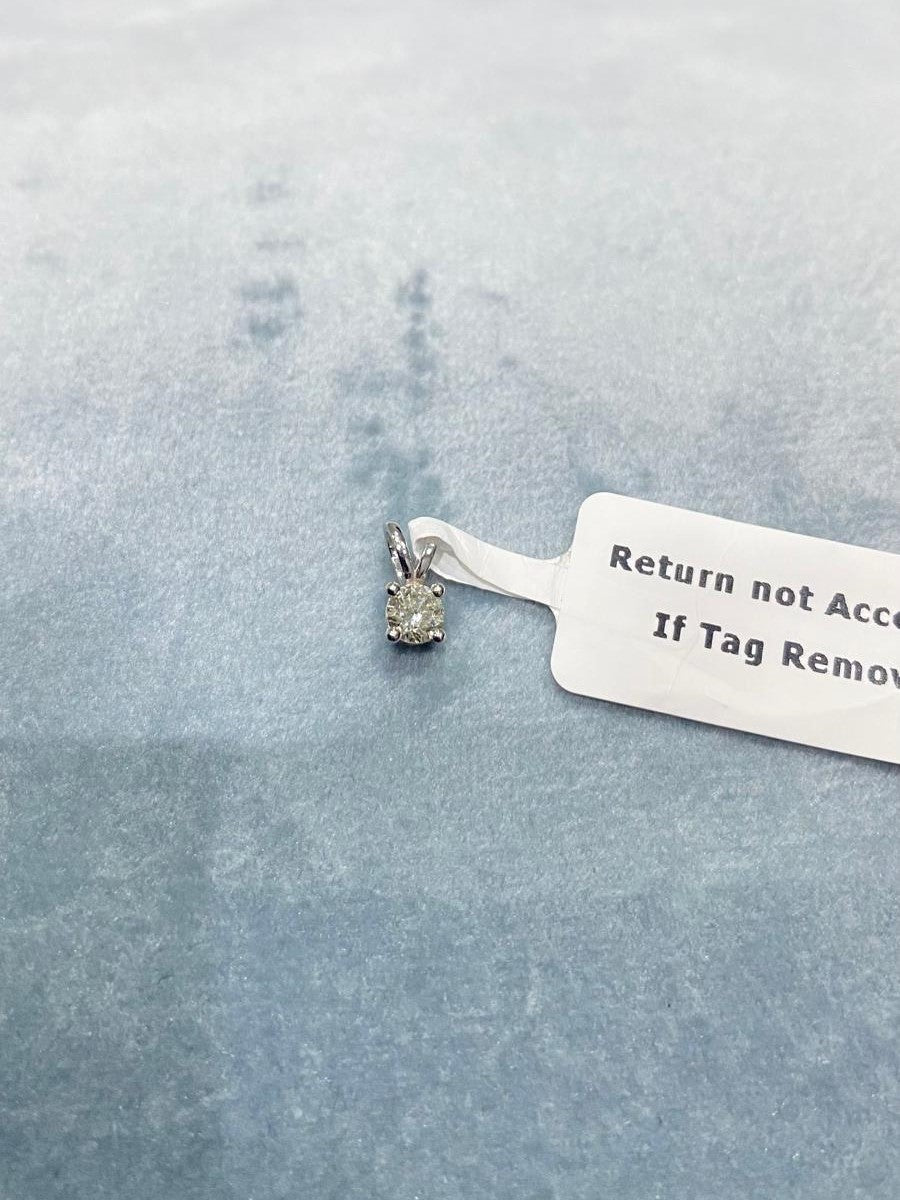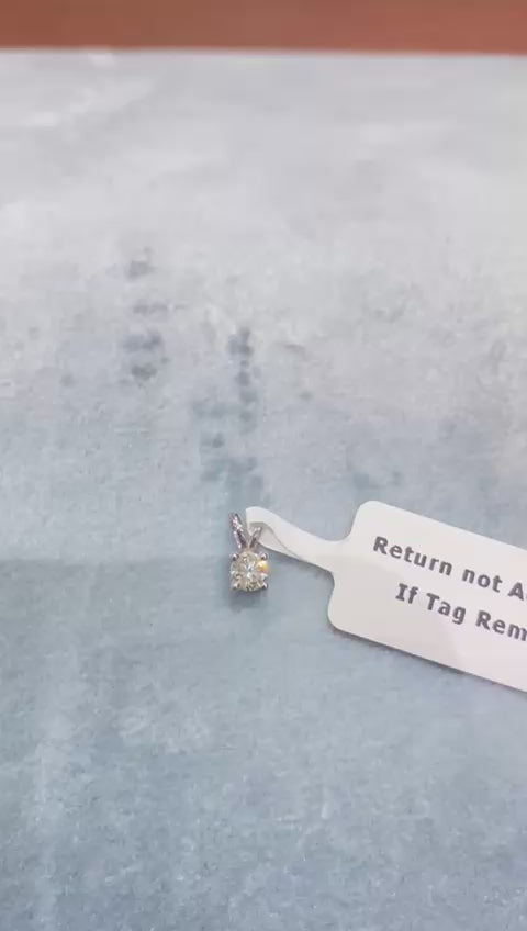 Discover refined elegance with this beautifully crafted 0.33 carat Natural Diamond Solitaire Pendant, designed in luxurious 14K white gold. The pendant features a brilliant round cut diamond, set securely in a classic four-prong setting, allowing maximum light reflection and exceptional sparkle.