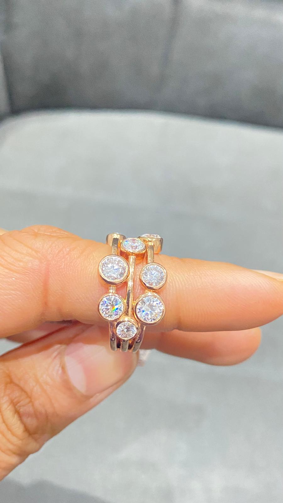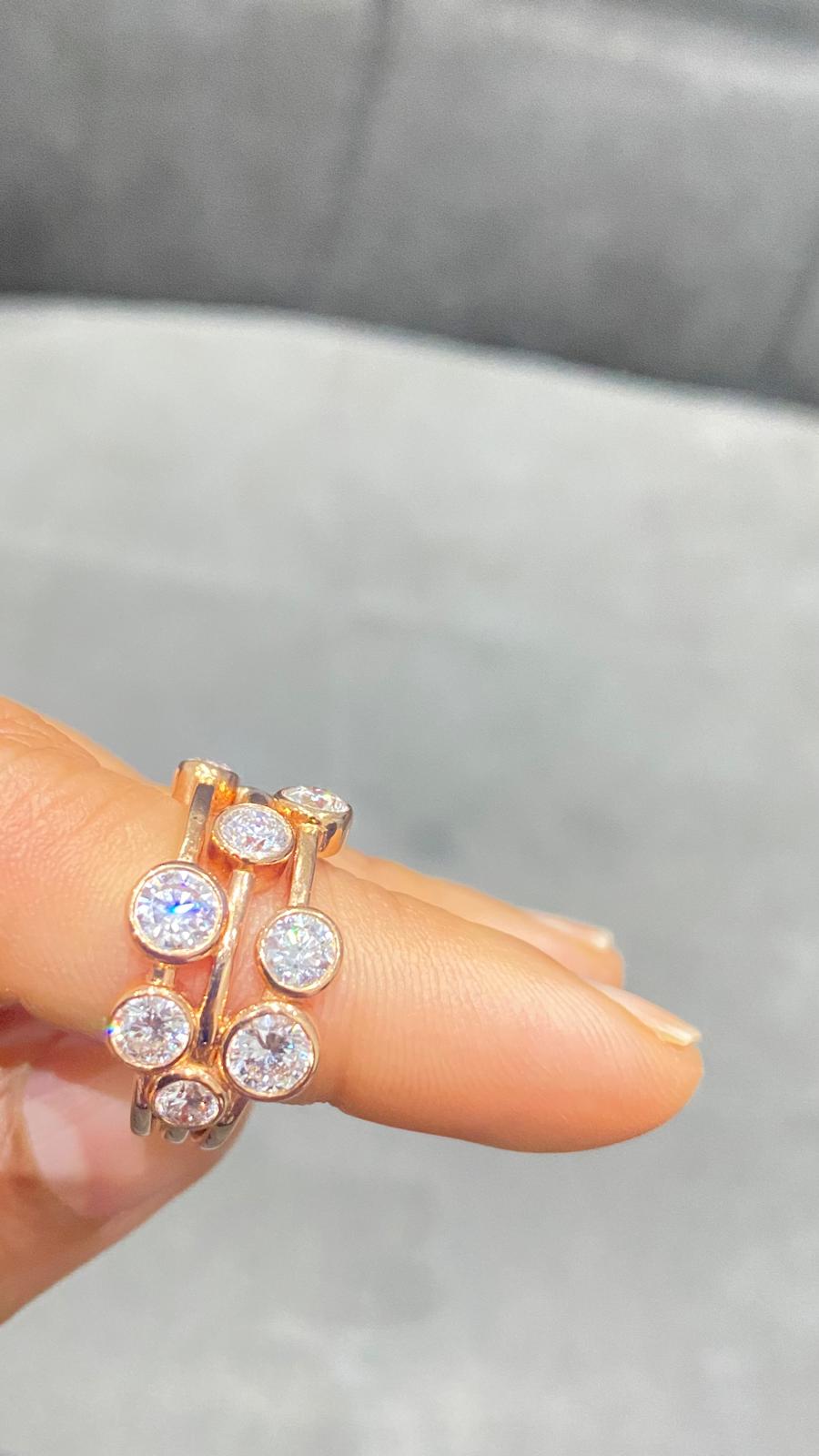 18K Rose Gold Bezel Set Multi Layer Bubble Ring in Lab Grown Diamond