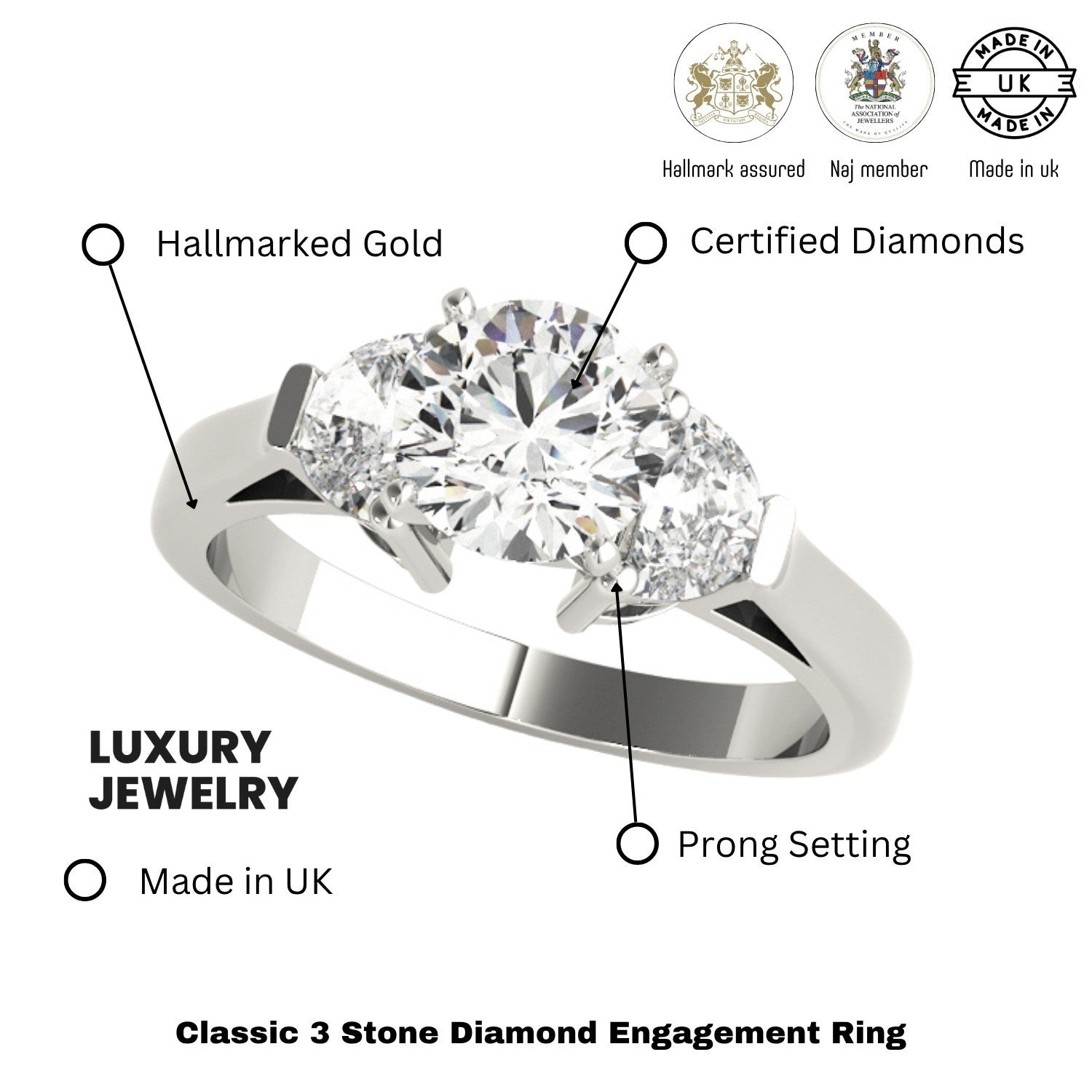 Available in 9K, 18K White, Yellow, Rose Gold, or Platinum, with total diamond weights from 0.50Ct to 2.00Ct. Each ring is handcrafted in the UK and hallmarked by the UK Assay Office for guaranteed authenticity.